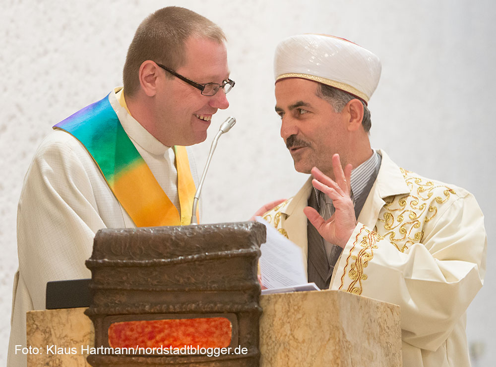 Gemeinsam mit Imam Yilmaz, Kocatepe-Moschee und Vikar Kornelius Heering, evangelische Lydiagemeinde, gestaltete Haug auch den Gottesdienst. Pastor Ansbert Junk hielt die Predigt.