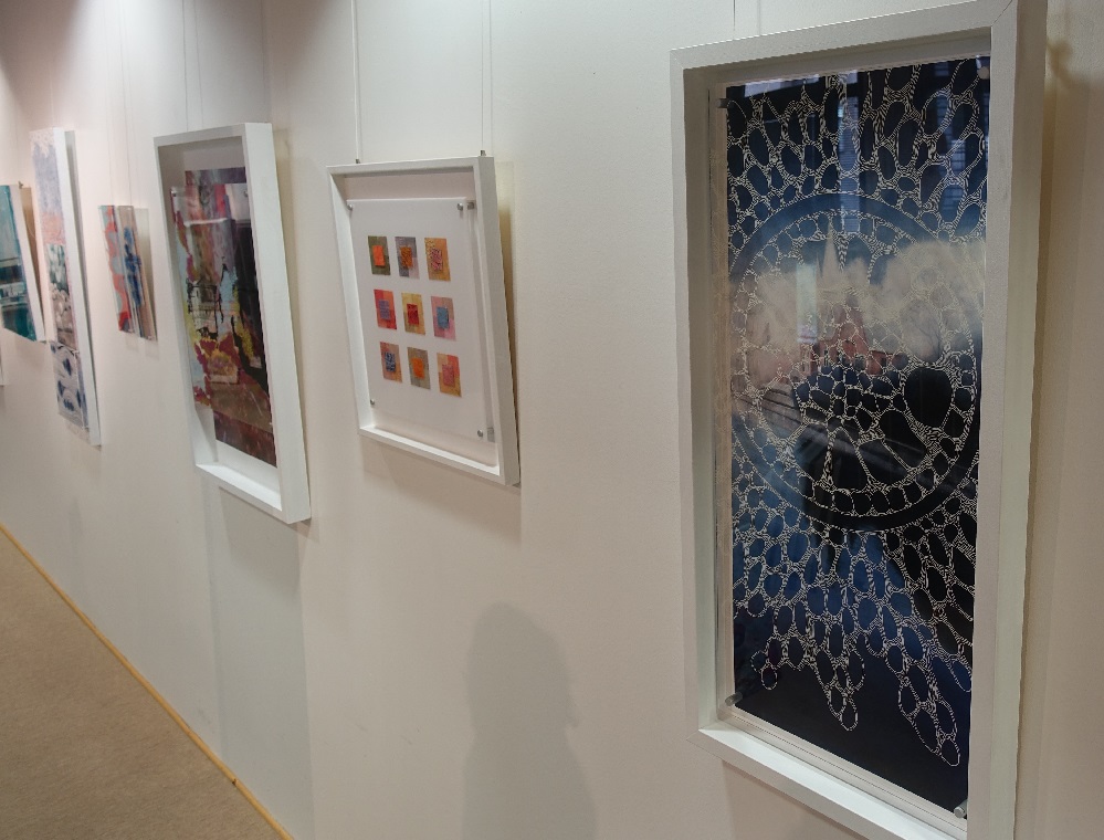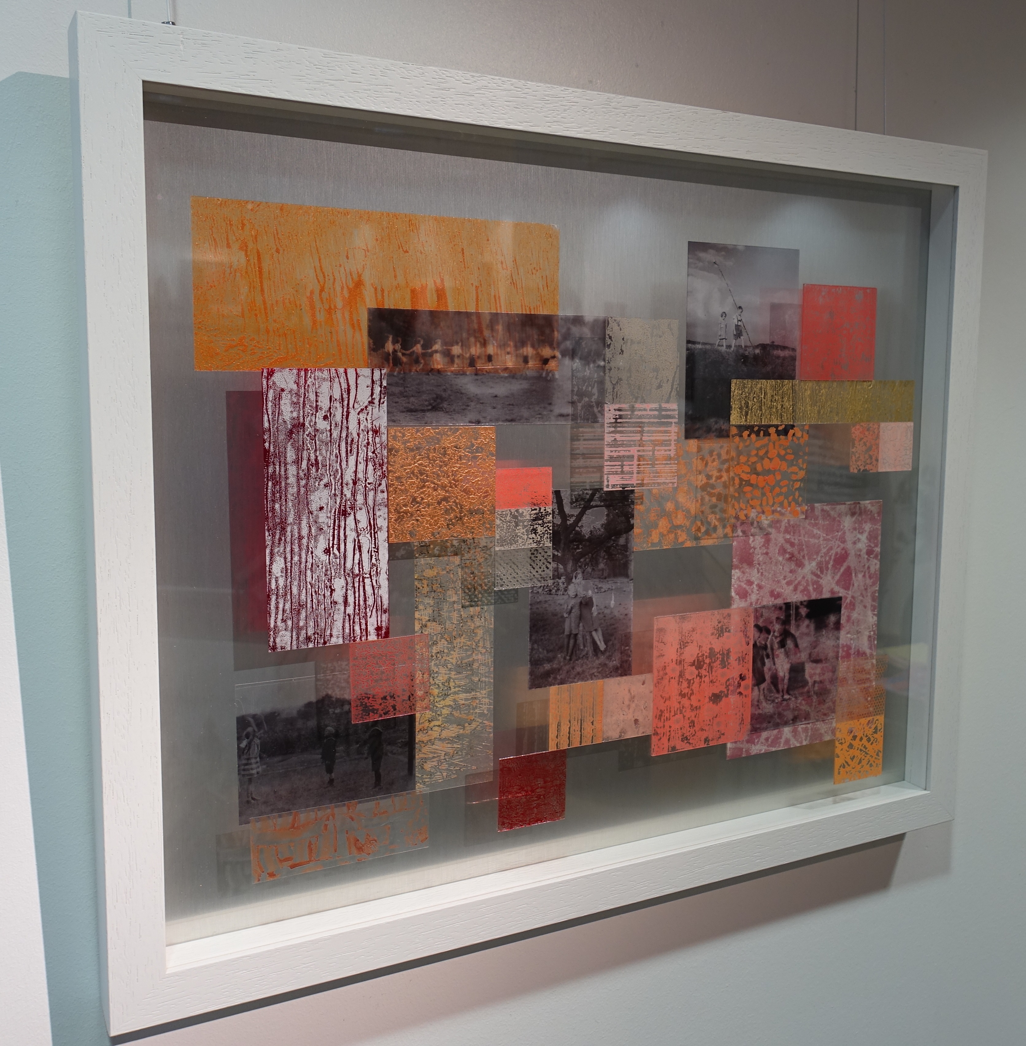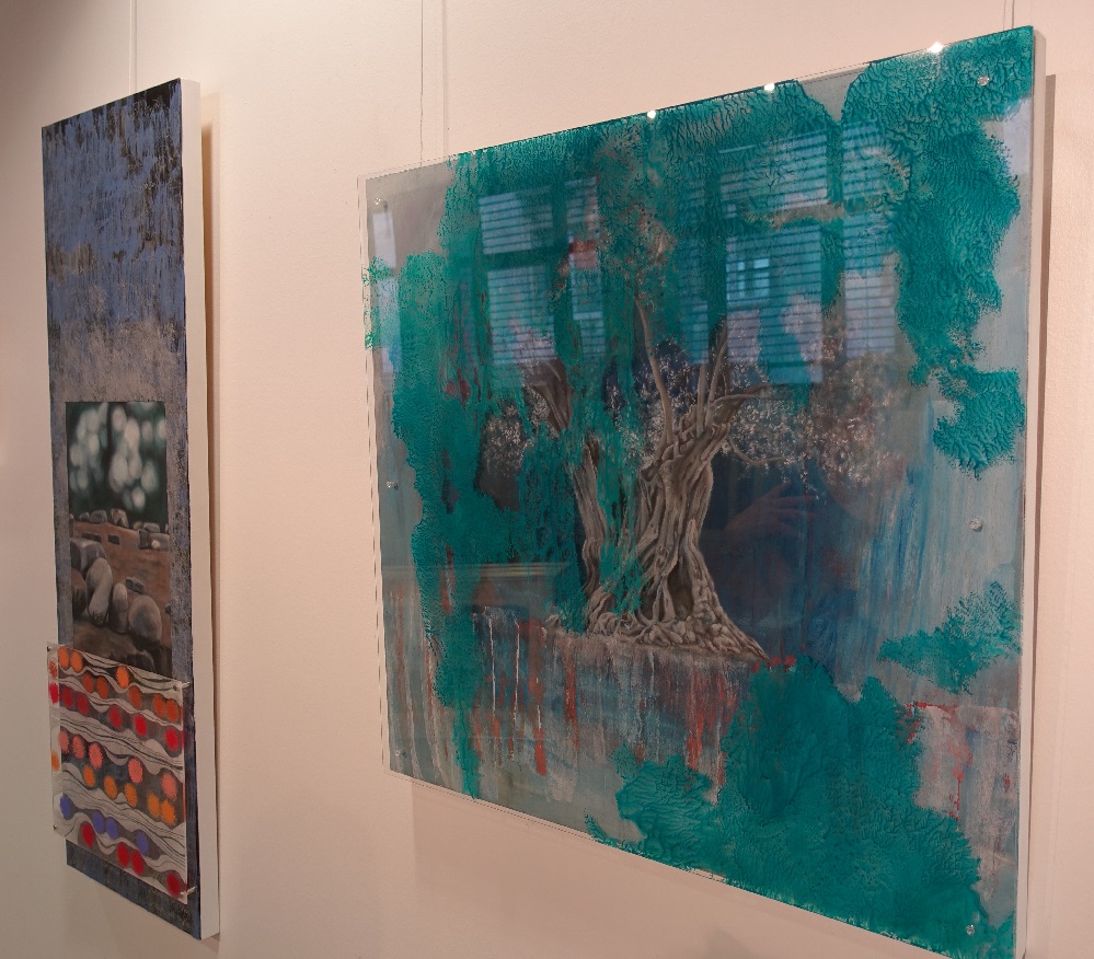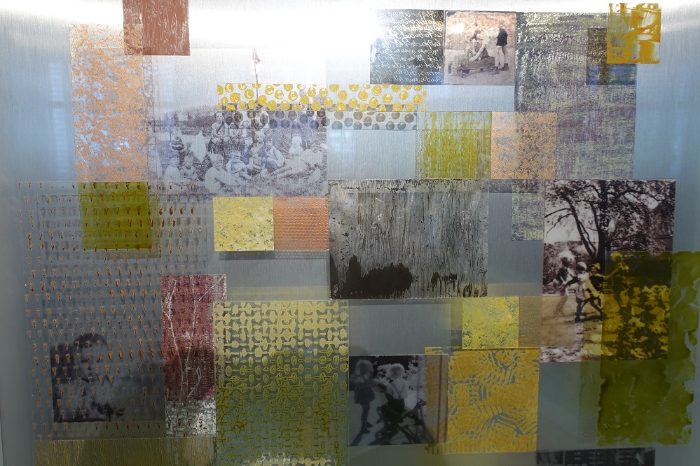 „Einige der Werke in dieser Ausstellung basieren auf, oder beinhalten, zum Beispiel die Fotografien meines Vaters“, und deutet auf zwei ihrer Zweidimensionalen Werke der Ausstellung. „Die wichtigste Inspirationsquelle für mich aber ist die Natur, die für mich leicht erreichbar ist, weil ich im Süden von Dortmund lebe.“
