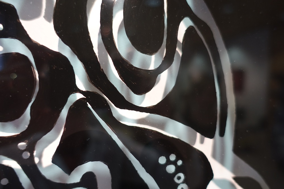 „Das Unvorhergesehene verändert die Komposition.“ Die Verwendung von Acryl anstelle von Glas ermöglicht es der Künstlerin ohne fremde Hilfe selber die zweite Dimension ihrer Bilder zu erstellen.
