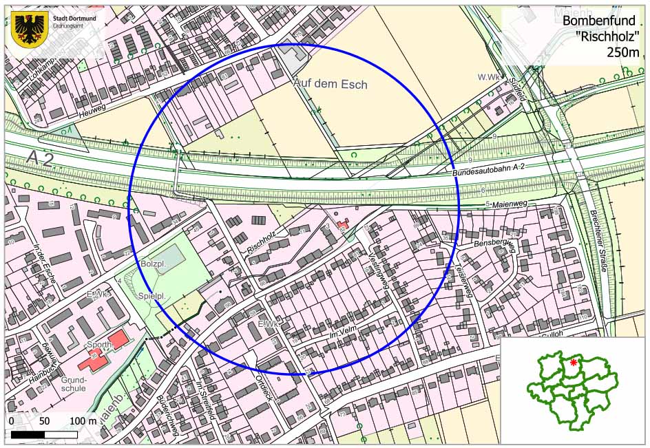 Rund 500 Anwohnende müssen ihre Häuser und Wohnungen verlassen. Die Stadt Dortmund richtet in der Brechtener Grundschule, Am Birkenbaumweg 35, eine Betreuungsstelle ein. Sie hat ab 17:30 Uhr geöffnet und wird von einem Evakuierungsbus angesteuert. Dieser hält im Maienweg auf Höhe der Hausnummer 75.