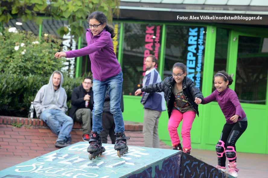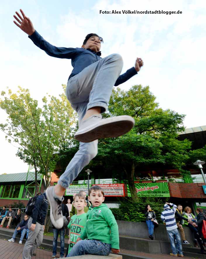Durch einen Regenschauer etwas früher beendet als geplant war das Outdoor-Programm vor dem Stadtteil- und Kulturzentrum der Nordstadt.