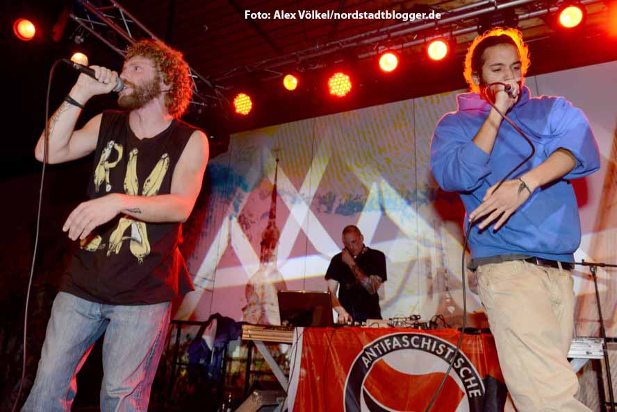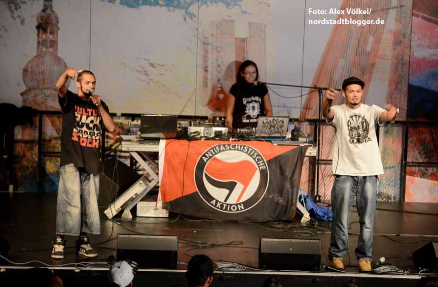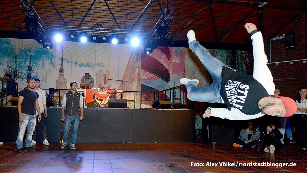 Anschließend ging es in der Agora des Hauses weiter. Hier traten die Headliner SBK Basement (mit den Crews Jokaz & Schrottboykott) und Gipsy Mafia (Hip Hop) im Dietrich-Keuning-Haus auf.
