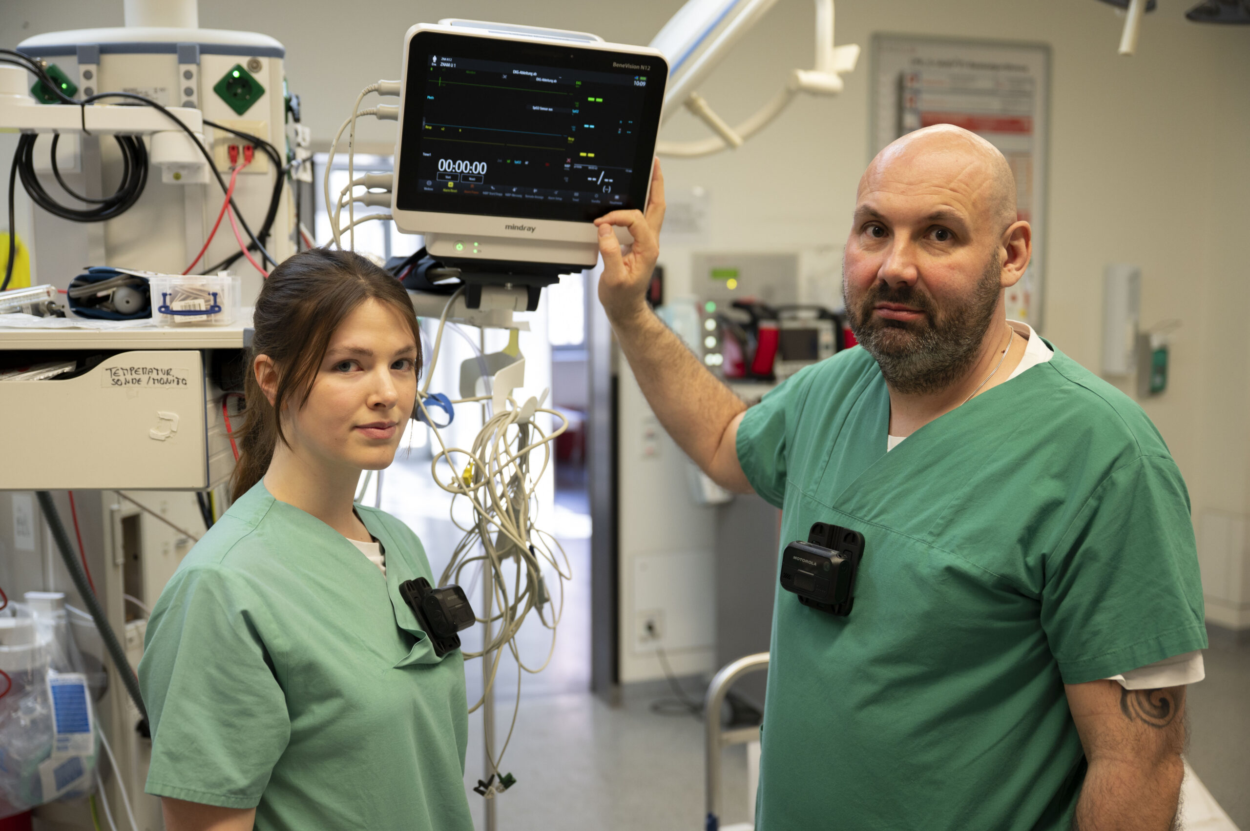 Christian Eggers, Funktionsleitung der Notaufnahme Nord, und Daniel Senftleben, Funktionsleitung der Notaufnahme Mitte, sind zwei der 24 Mitarbeiter, die die Kameras in der Pilotphase ausprobieren.
