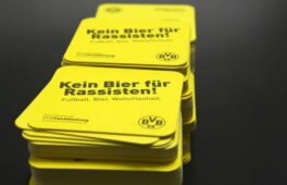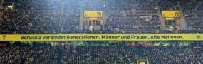 Einige beeindruckende Beispiele der vielen und sich politisch mit Nachdruck im demokratischen Spektrum positionierenden Aktivitäten von „Uns verbindet Borussia“. – Die Antirassismus-Arbeit sei allerdings keine explizite Antwort auf die immer wieder in die Schlagzeilen geratenen Umtriebe der notorischen Borussenfront, erläutert die Leiterin der AG, Sarah Hartwich.
