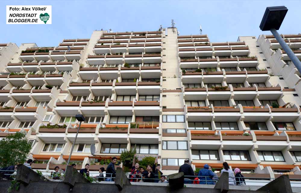 In den 1970er Jahren wurden die mehr als 400 Wohnungen errichtet. Im Jahr 2004 verkaufte die städtische DOGEWO an Jansen & Helbing – „Spekulanten, zum Teil wegen Betruges verurteilt“, berichtet der Verein. Das Gebäude stand dann längere Zeit unter Zwangsverwaltung.