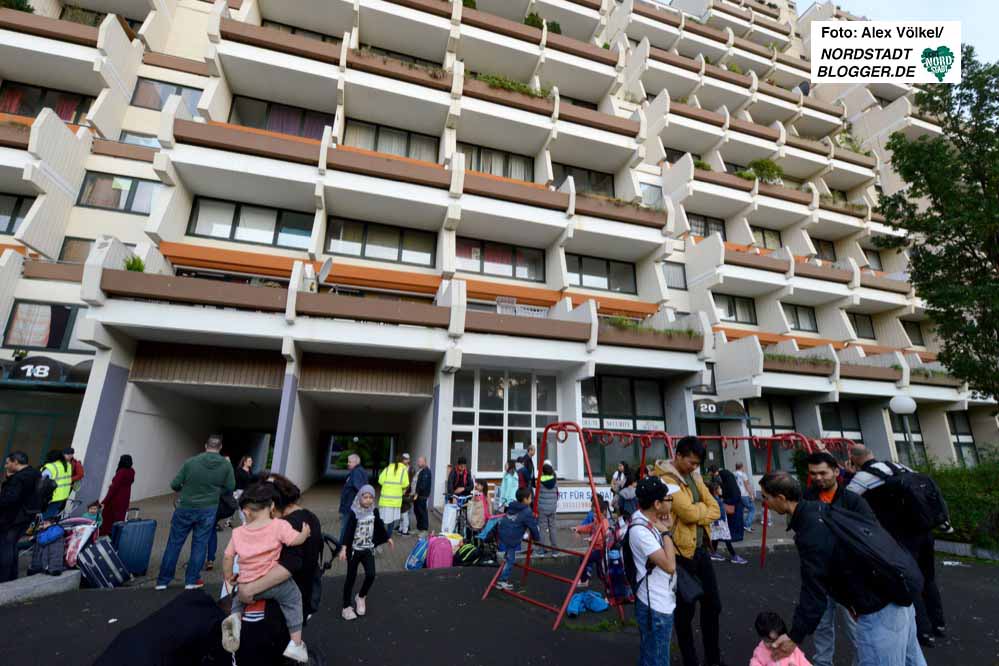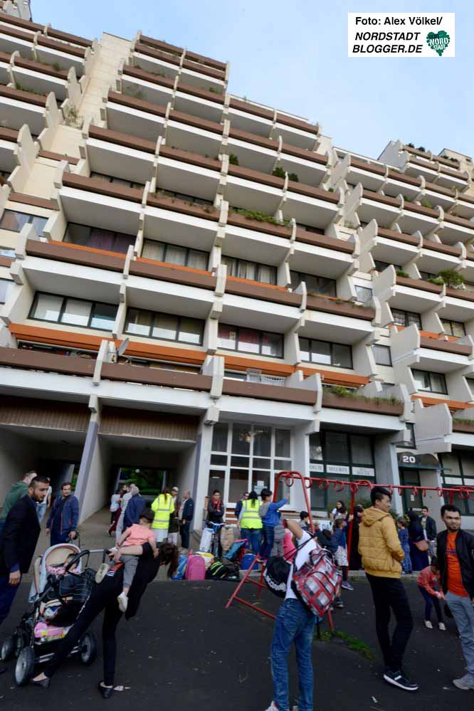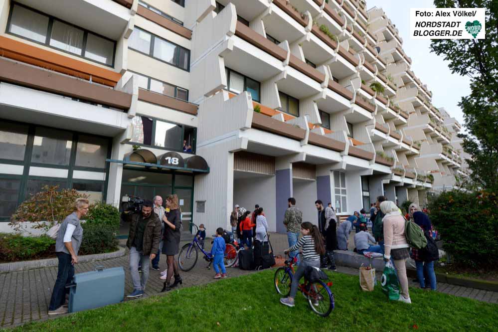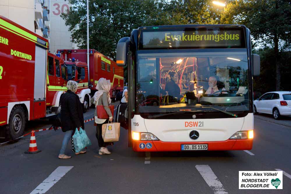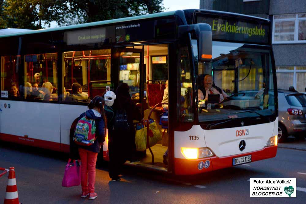 Das ist ein Schock für fast 800 BewohnerInnen: Wegen „unabweisbaren Brandschutzgründen“ müssen sie ihre Wohnungen im „Hannibal 2“ in Dorstfeld verlassen. Betroffen sind die Wohngebäude Vogelpothsweg 12-26. Am Abend lief die Evakuierung ruhig und geordnet ab. Wer keine eigene Bleibe bei Freunden oder Familie fand, musste in der Helmut Körnig-Halle übernachten.