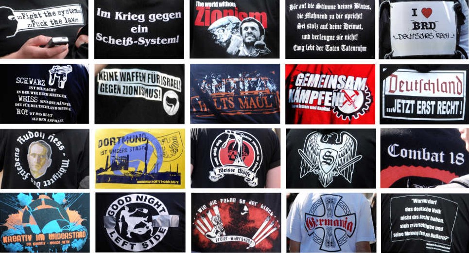 T-Shirt-Motive von Neonazis auf Aufmärschen in Dortmund. Collage: Alex Völkel