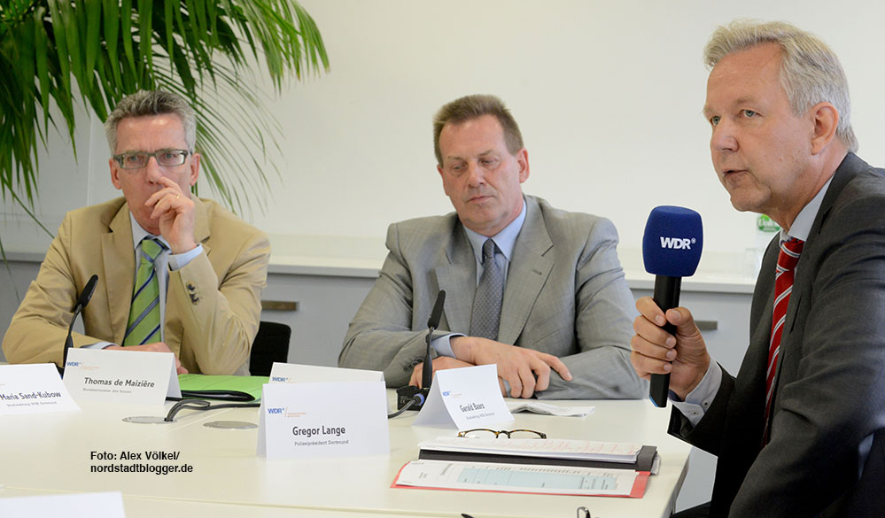 Ganz im Zeichen der Bekämpfung des Rechtsextremismus stand der Besuch von Bundesinnenminister Thomas de Maizière in Dortmund. Eine der diskutierten Fragen: „Ist Dortmund überhaupt eine Hochburg des Rechtsextremismus?“. Gemessen an den Bevölkerungszahlen sicher nicht. „Dortmund ist nicht eine Hochburg, wohl aber ein organisatorisches Zentrum der Neonazis“, betonte Polizeipräsident Gregor Lange.