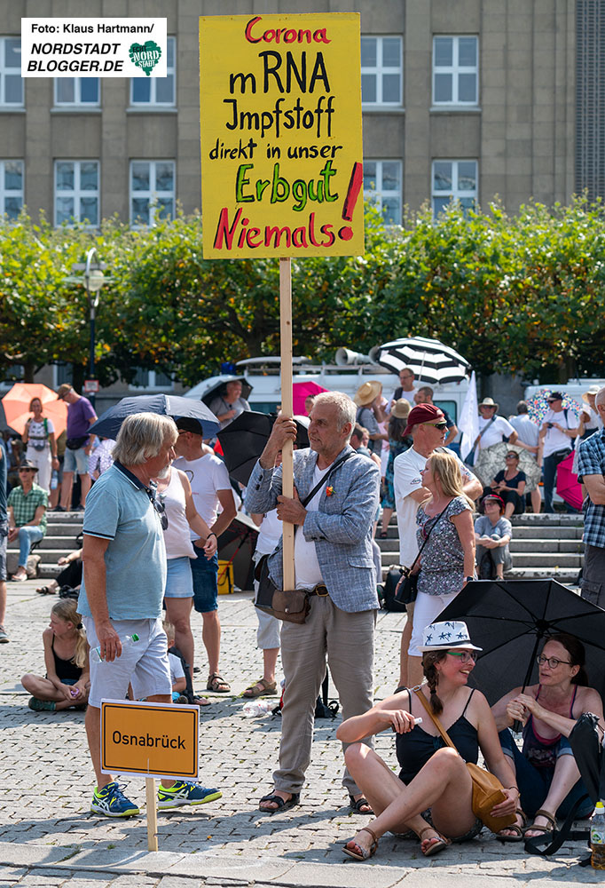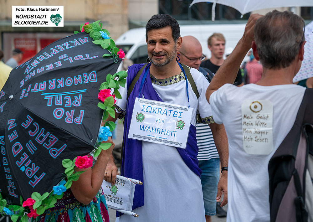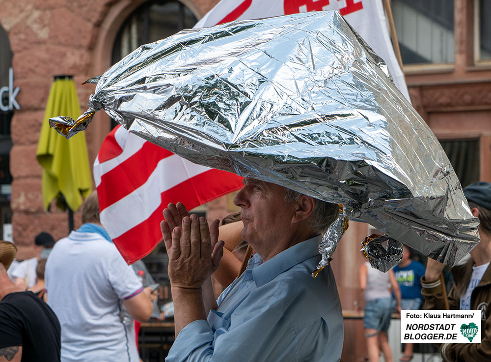 Das Tragen eines Mund-Nasenschutzes war zwar nicht Teil der Auflagen, wurde von den Teilnehmenden aber ohnehin abgelehnt. Auf Plakaten und in mehreren Reden wurden Schutzmasken als „Bürgermaulkorb“ oder als „Symbol der Unterdrückung“ bezeichnet. Auch der Nutzen der Schutzmasken wurde bestritten. Eine wirkliche Begründung für ihre Thesen blieben die Demonstrierenden aber schuldig.