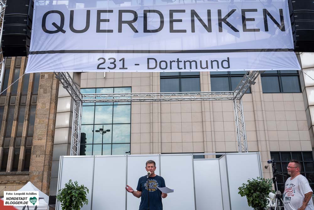 Nachdem die Begeisterung und der Zulauf zu den Dortmunder Protesten gegen die Corona-Beschränkungen in den vergangenen Wochen fast zum Erliegen kam, hat die „Bewegung“ von außen neue Impulse bekommen. „Querdenken“, die auch die umstrittene Demo in Berlin organisiert hatte, hatte bundesweit für eine Kundgebung in Dortmund getrommelt und so für eine Professionalisierung des Protests gesorgt. Die Teilnehmenden waren aus vielen Städten angereist, wie man an den Plakaten und teils auch an den Kennzeichen sehen konnte.