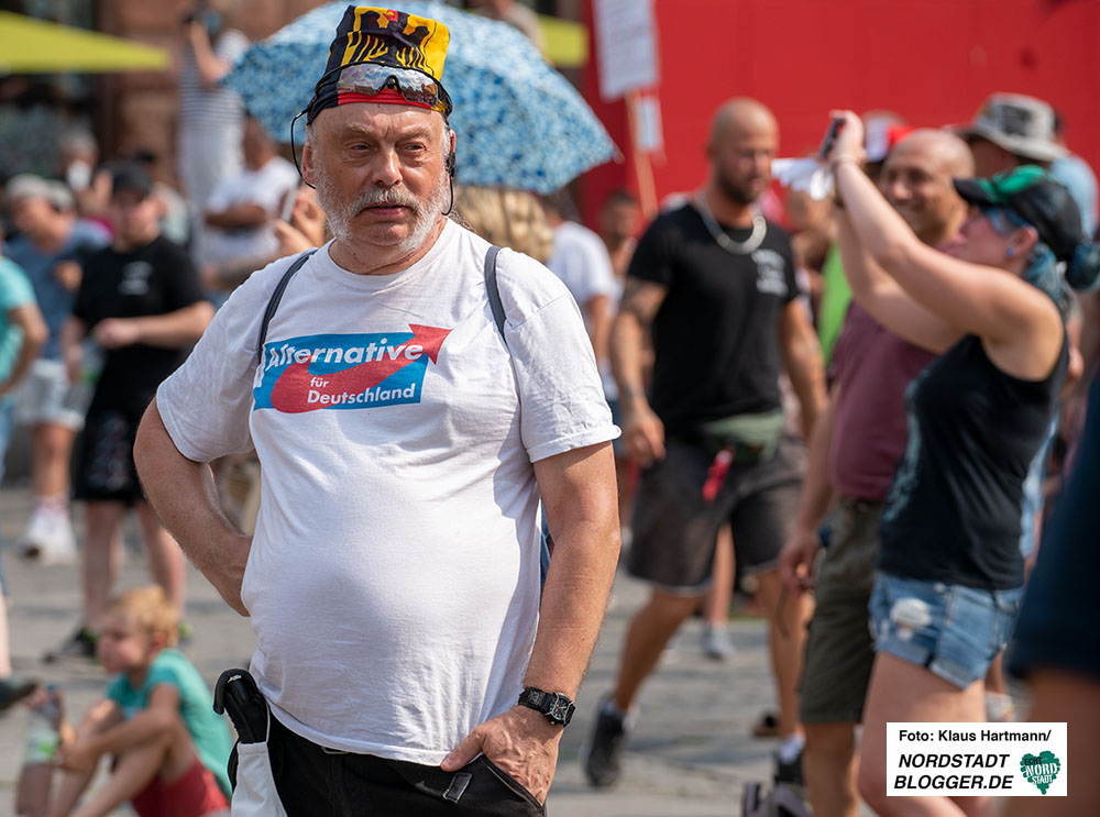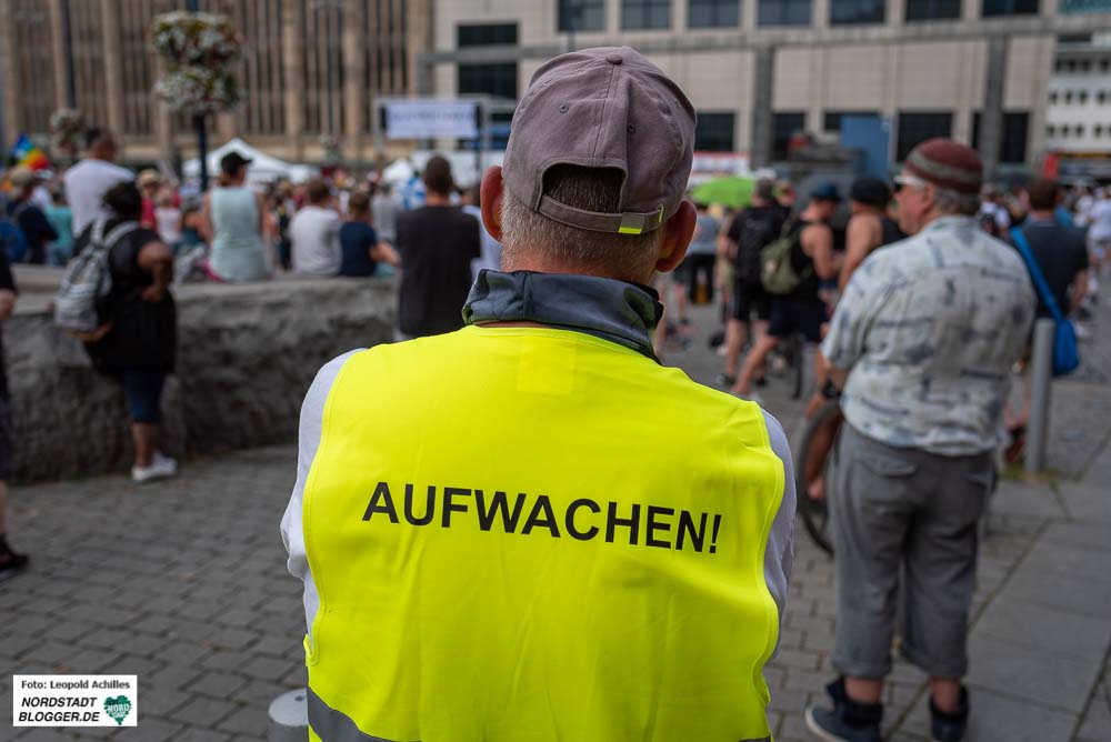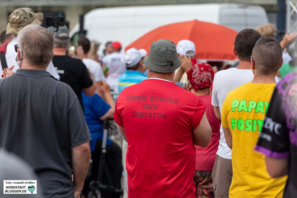 Von der Bühne wurden die üblichen Verschwörungsideologien verbreitet, „Eliten“, die mit ihrem Geld die Welt beherrschen würden oder ein Staat, der Corona nutze, um Grundrechte außer Kraft zu setzen.