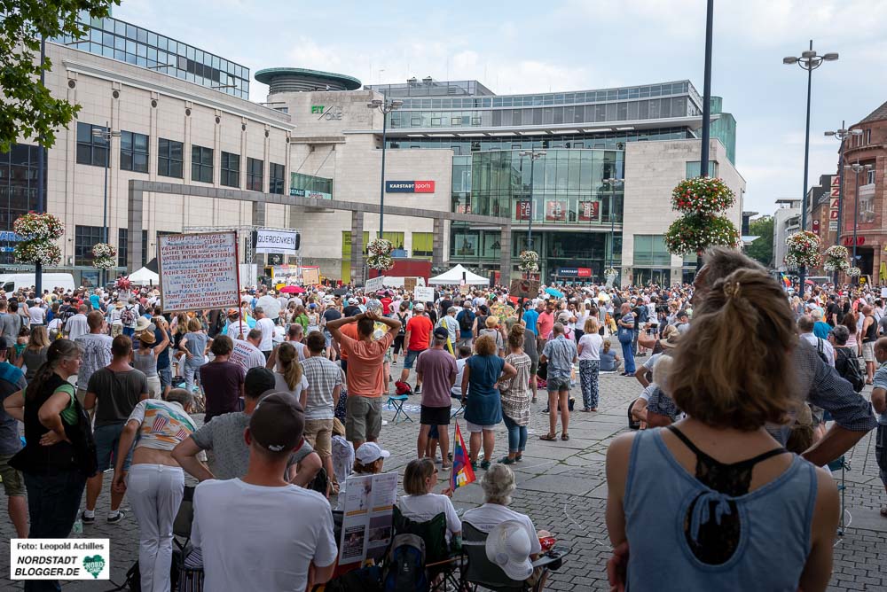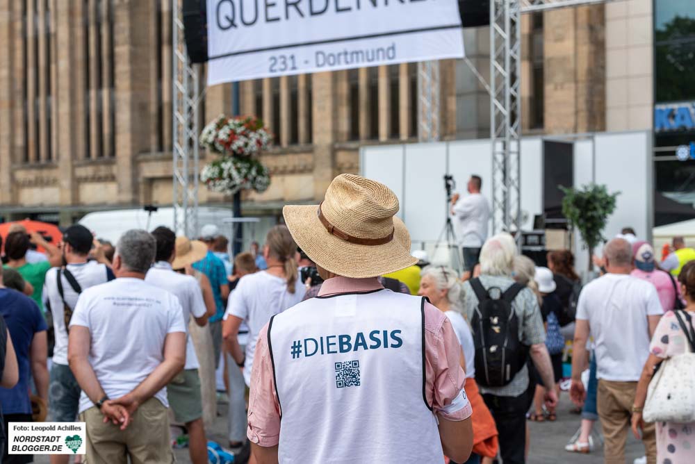 Die bis zu 2.800 Demonstrant*innen waren aus dem ganzen Bundesgebiet angereist. Es war die größte Demonstration von Coronaleugner*innen in Dortmund. Zuletzt waren zu den Kundgebungen der Dortmunder Gruppe „Nicht ohne uns“ nichtmal 100 Menschen erschienen. Das Interesse hatte deutlich nachgelassen.