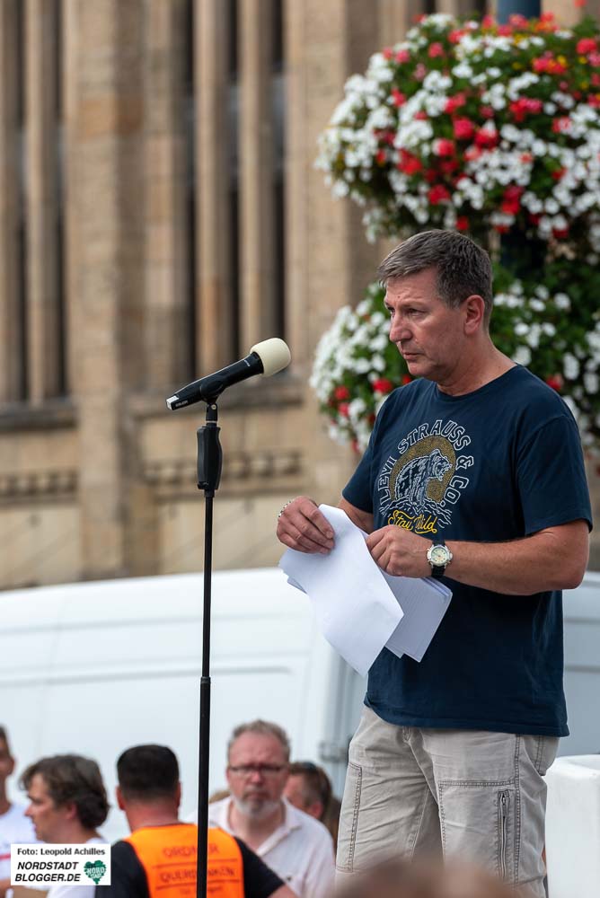 Für besonders großen Applaus bei den Coronaleugner*innen sorgte unter anderem ein niedersächsischer Kriminalhauptkommissar. Der Polizist aus Hannover, Michael Fritsch, „erklärte“ auf der Bühne, dass es in Deutschland keine Gewaltenteilung mehr gebe und setzte den Coronavirus mit einem Schnupfen gleich.