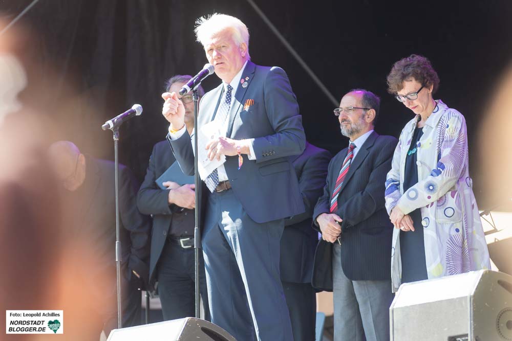Im Anschluss an das Gebet eröffnete Oberbürgermeister Ullrich Sierau das Familienfest offiziell. Er zeigte sich erfreut, Delegationen aus drei Partnerstädten Dortmunds, aus Leeds in Großbritannien, Amiens in Frankreich und Rostow am Don in Russland zum DORTBUNT!-Cityfest begrüßen zu dürfen.