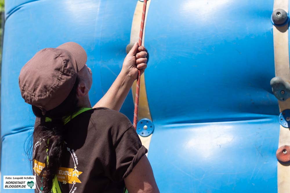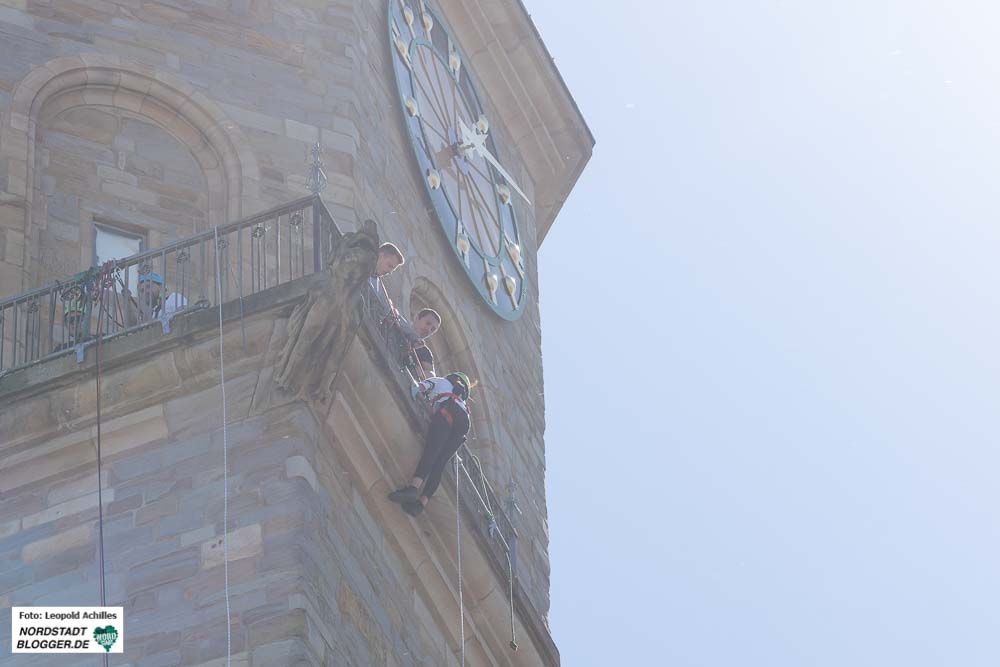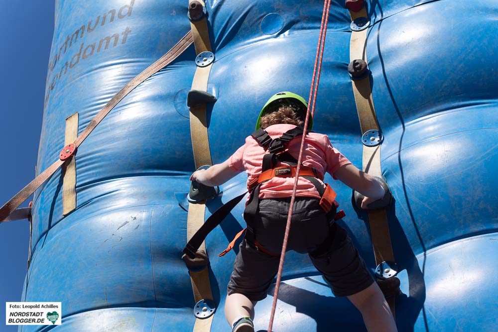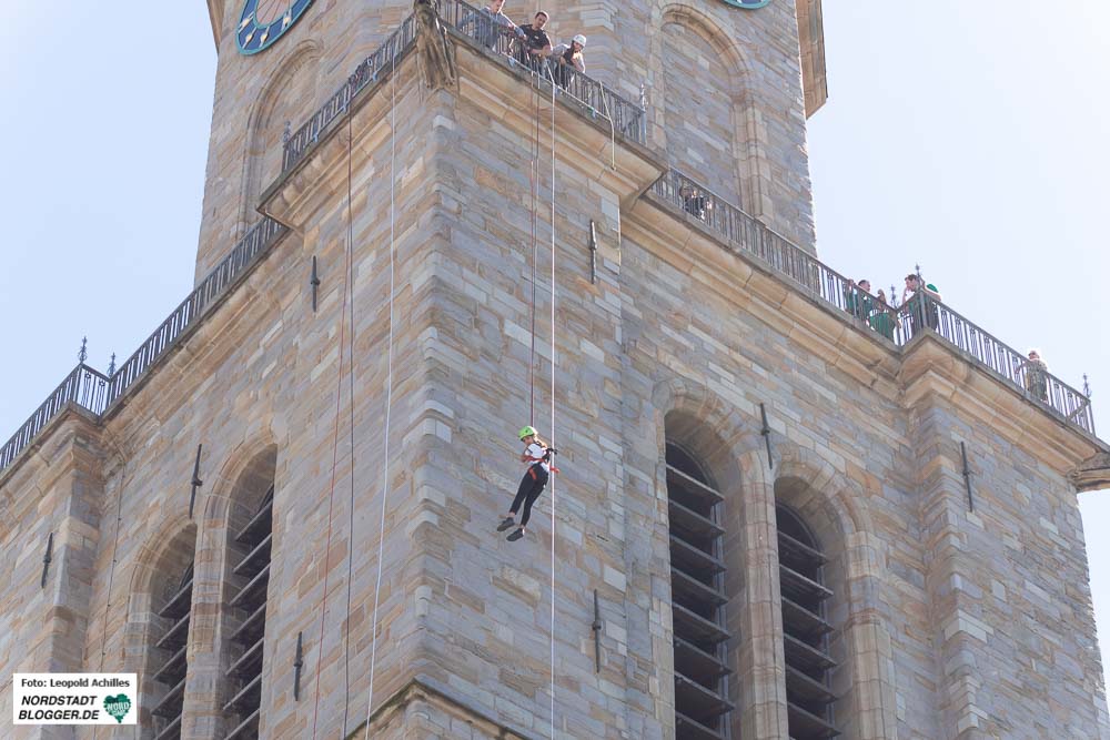Ein besonderes Highlight war neben der Kirchenbühne die Kletterstation an der Reinoldikirche, wo sich viele Kinder und Jugendliche von Fachkräften entweder den Turm herunter abseilen ließen oder versuchten ihn herunter zu gehen bzw. zu klettern.