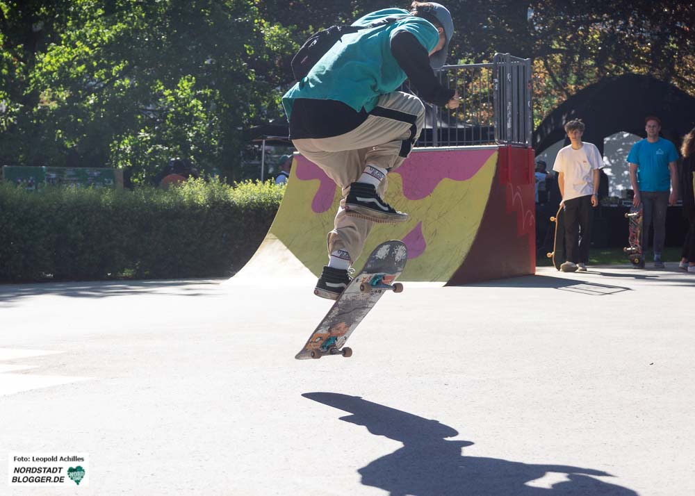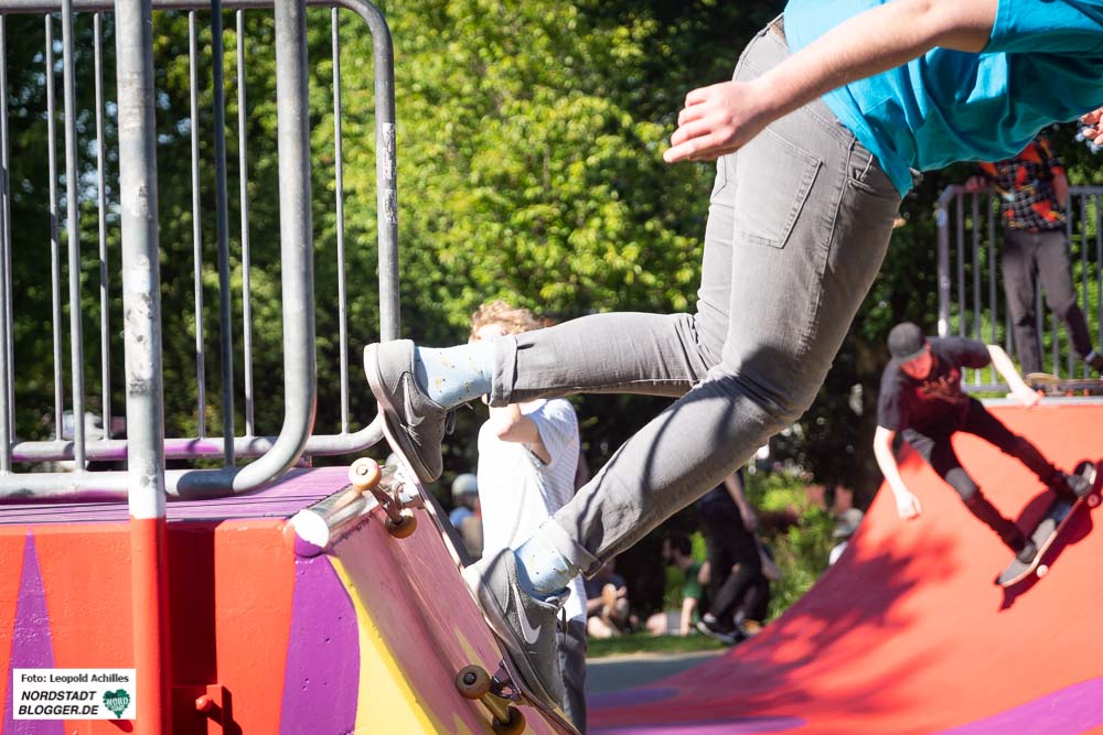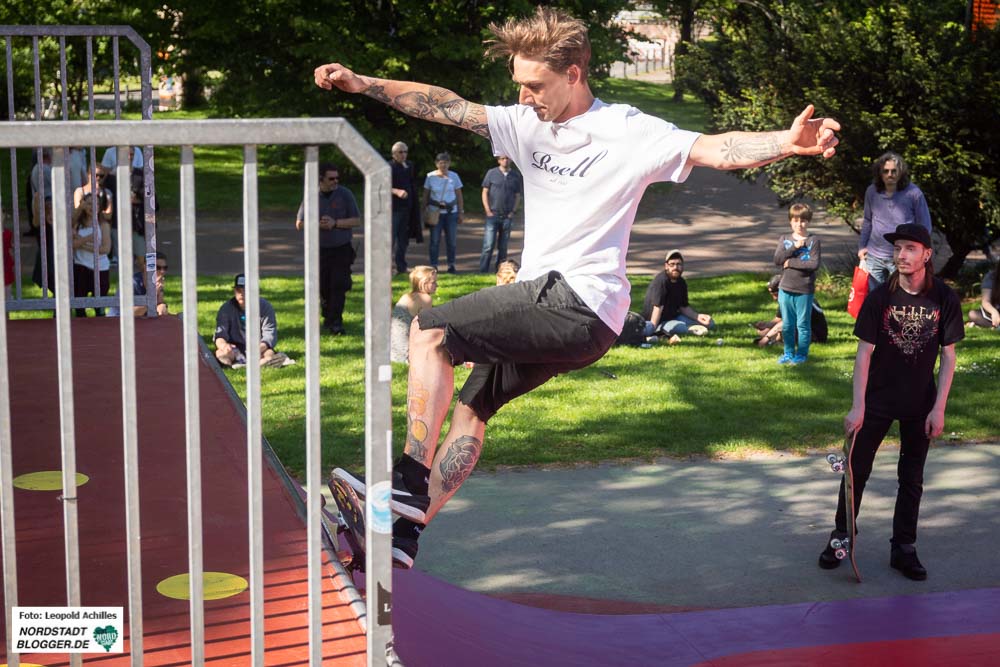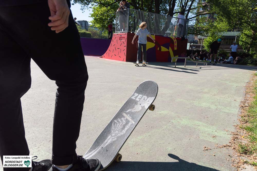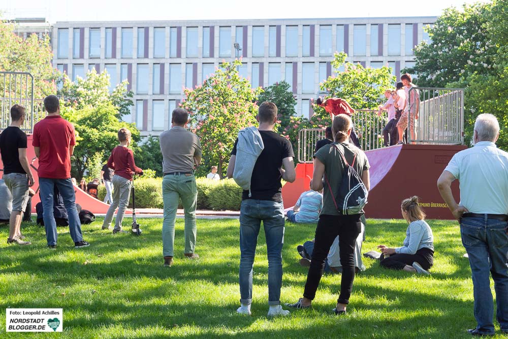 Überquerte man den Wallring von Süden her, gelangte man direkt in einen der Hotspots des Festivals, den Stadtgarten. Hier wurde der neu gestaltete Skatepark mit einem Contest eingeweiht. Durch die sportlich, athletisch-akrobatischen Einlagen der FahrerInnen wurde den ZuschauerInnen hier einiges geboten und so füllte sich die Anlage und die umliegenden Wiesen schon am frühen Nachmittag.