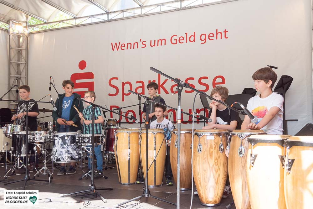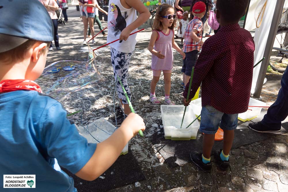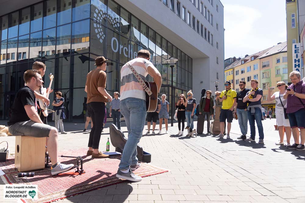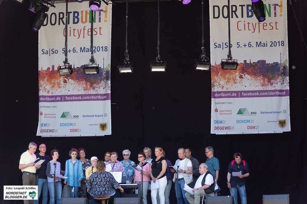 Seifenblasen schwirrten durch die Luft und im Brunnen des Stadtgartens entstand durch den Sonnenlichteinfall ein kleiner Regenbogen. Besser konnte das DORTBUNT!-Konzept nicht beworben werden. Und mindestens so bunt und vielfältig wie Seifenblasen und Regenbogen, war auch das begeisterte Publikum.