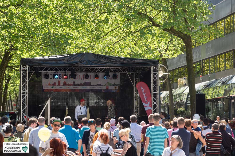 Auch auf der DEW21-Bühne in der Hansastraße war das Programm am Sonntag auf Kinder und Familien abgestimmt. So gab es ein Europaquiz für Kinder und den Auftritt des Kinder- und Jugendzirkus „Fritzantino“, bevor es ab 14 Uhr wieder mit einem gemischten Musikprogramm weiterging.