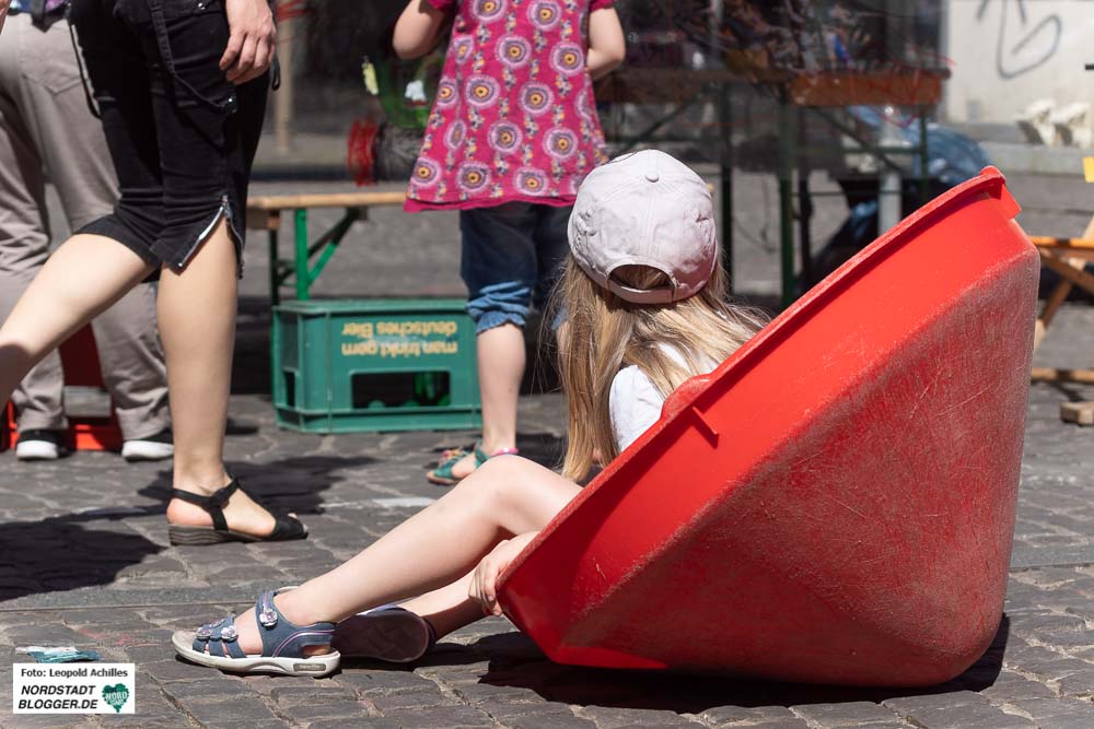 Der Stadtgarten wurde ab 14 Uhr zur Familiendisko, wo groß und klein gemeinsam tanzen und Spaß haben konnten. Das FZW Dortmund veranstaltet solche Events schon seit Oktober 2017 unter dem Motto „Alle feiern gemeinsam!“. Diese Open-Air Variante ist ein Novum und so kamen auch zahlreiche Familien mit Kindern zusammen, um sich vom Tanzenden Elefanten das Tanzen beibringen zu lassen, Jonglieren zu lernen oder einfach nur das schöne Wetter zu genießen.