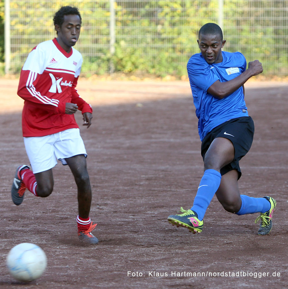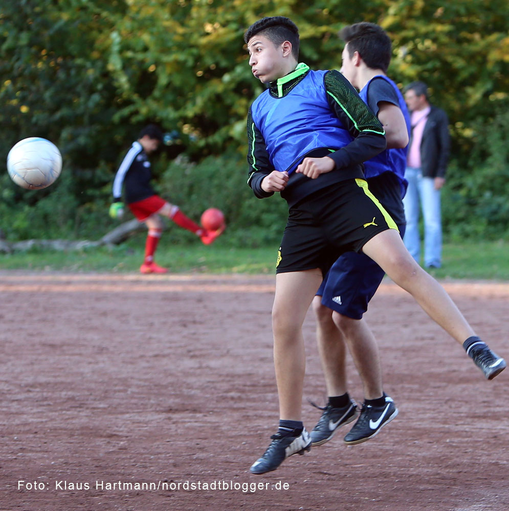 Schiedsrichter Abdel Salhi hatte die multikulturelle Rasselbande wie immer gut im Griff. Zum ersten Mal dabei hatte er auch das Spray für die Mauer beim Freistoß. Die Nordstadtliga ist halt eine „richtige“ Liga.