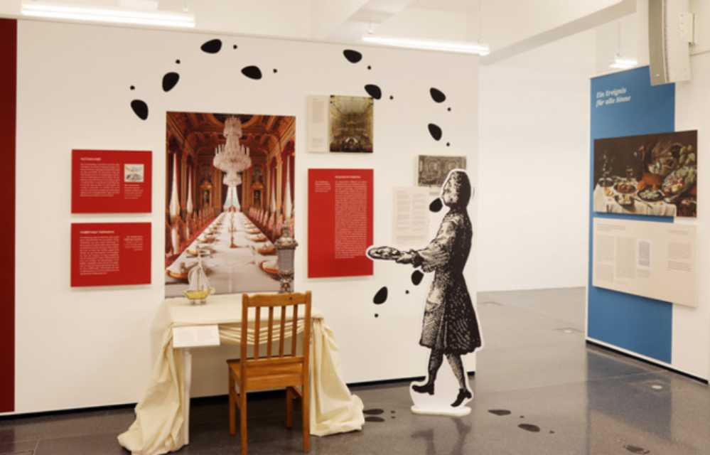 Ein Schwerpunkt liegt auf der Entwicklung der Tischkultur, die sich seit der Antike nachweisen lässt. Besonders im Barock wurde das höfische Zeremoniell kunstvoll ausgestaltet – sichtbar in prunkvollen Tafelobjekten, Festaufzeichnungen und der umfangreichen Zeremonialliteratur. Die Ausstellung verfolgt diesen Prozess von der höfischen Repräsentationskultur der Frühen Neuzeit bis zur bürgerlichen Benimmkultur des 19. und 20. Jahrhunderts. Im Zentrum steht der gedeckte Tisch als Ort sozialer Codierung.