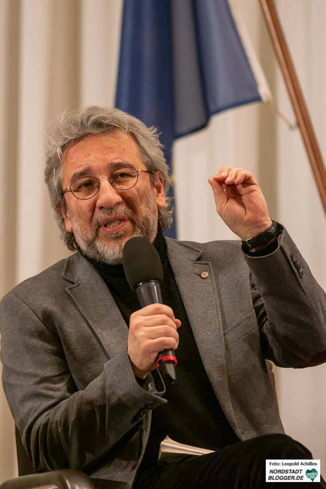 Eine Kollegin von den Nordstadtbloggern fragt nach: wie gehe Dündar denn hierzulande mit Erdoğan-Sympathisant*innen um? „Ich bin gegen Erdoğan, nicht gegen sie“ antwortet Dündar. „Ich kann diese Menschen nicht dafür verurteilen, dass sie sich beeinflussen lassen – ich kann nur meine eigene Stimme umso lauter erheben. Ich glaube, dass wir alle eigentlich ähnliche Ziele haben. Nur sind sie einer Propaganda unterzogen worden. Aber sie sind nicht meine Feinde.“ Beachtlich für jemanden, der im Exil leben muss.