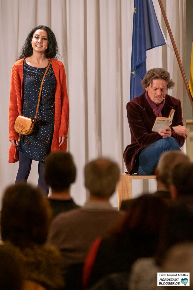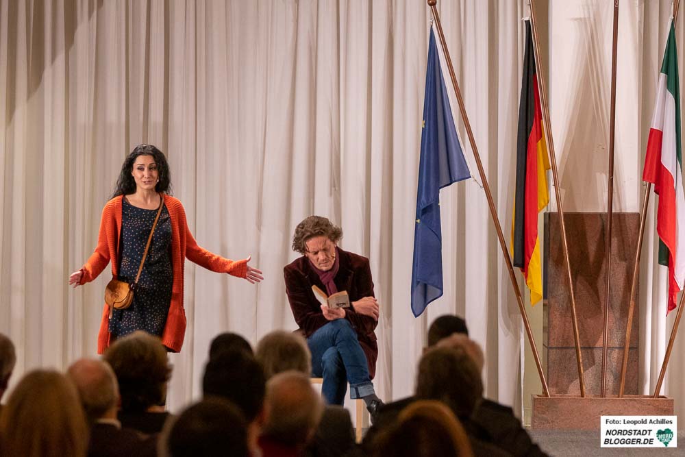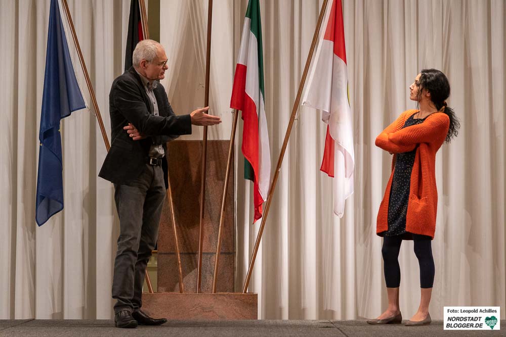 Vor rund 160 Gästen werden zunächst Teile eines Stücks vom Westfälischen Landestheater aufgeführt, das letztes Jahr Premiere feierte: „Verräter“ erzählt Teile vom Leben Can Dündars nach. Wie er sich in der Türkei immer wieder regierungskritisch äußerte.