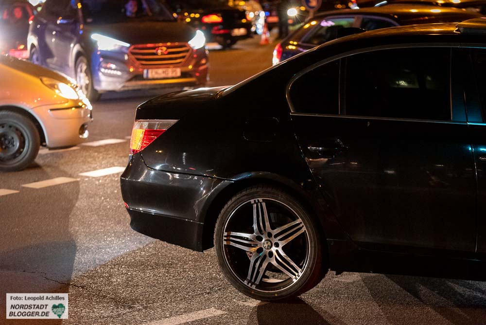 Innerhalb von Minuten bildeten sich hier lange Staus, was mit Hupkonzerten „belohnt“ wurde. Viele Autofahrer*innen und Fußgänger*innen hatten trotz der großen Ankündigung im Vorfeld nichts von den Kontrollen gehört. Wie schon bei vergangenen großen Kontrollen mussten auch unsere Reporter aufklären, dass es sich um Verkehrskontrollen wegen der Wall-Szene handelt und es nicht etwa ein Anschlag gegeben habe.