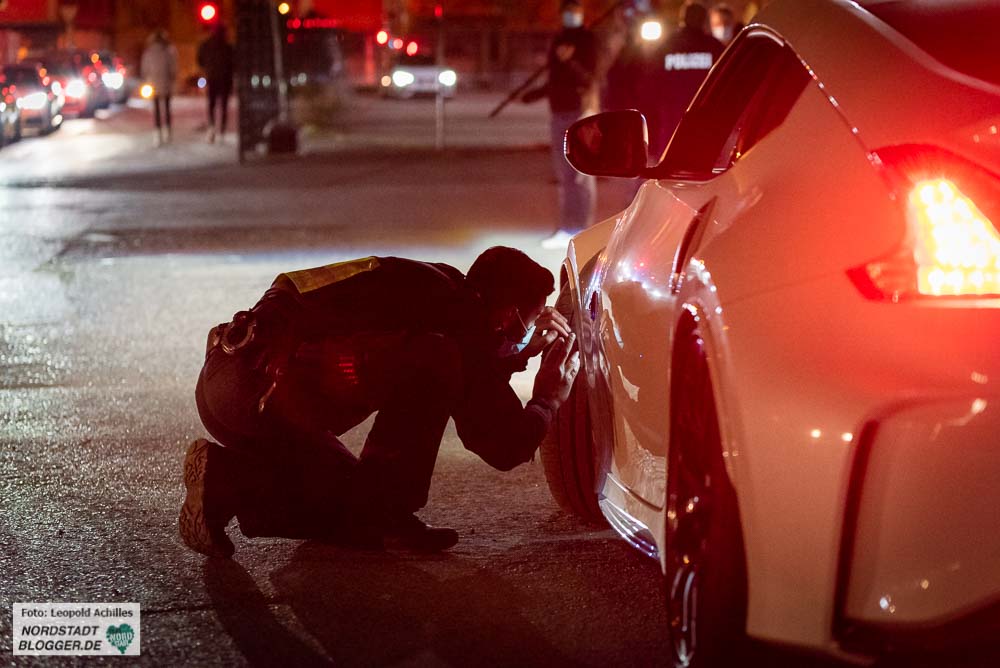 Auch am Freitagabend (23. April) war die Polizei Dortmund an den Hotspots in der Dortmunder Innenstadt im Einsatz im Kampf gegen die Raser-, Poser- und illegale Tuningszene. Mit Einsetzen der Ausgangssperre um Mitternacht wurde es still. Bis dahin hatten die Einsatzkräfte vor allem an einer Kontrollstelle am Wallring sowie im Bereich des Hafens bereits fast 70 Fahrzeuge und knapp mehr als 100 Personen kontrolliert.