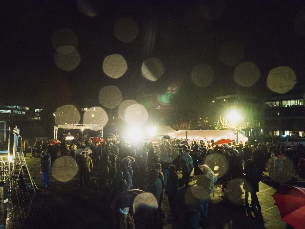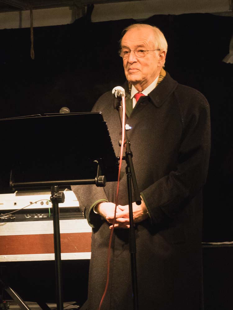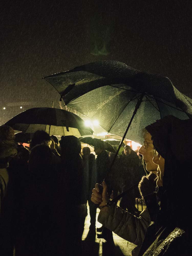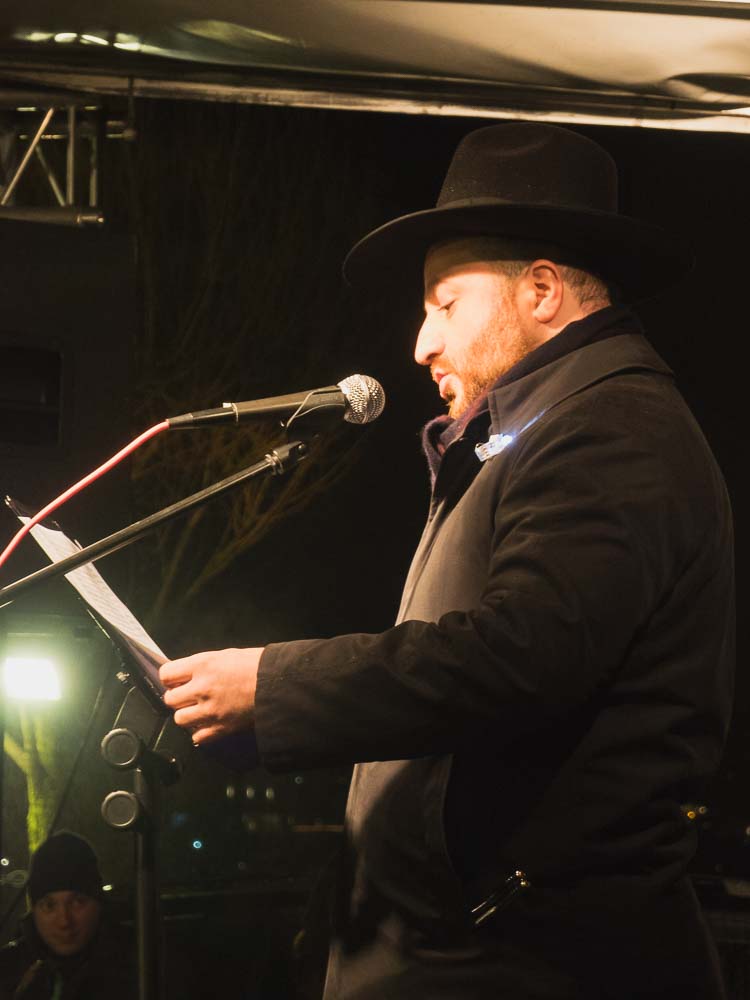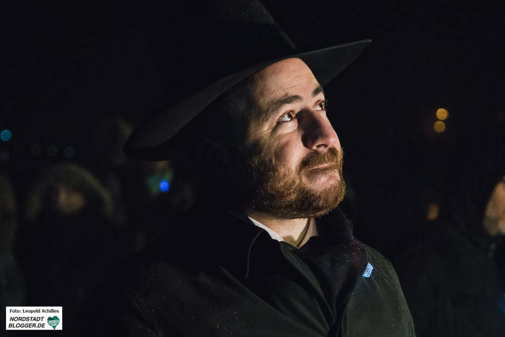 Zu Beginn der Veranstaltung setzte starker Nieselregen ein. Rabbiner Baruch Babaev begrüßte die Anwesenden und bedanke sich für das rege Erscheinen. Wie viele an diesem Tag erinnerte auch der Dortmunder Rabiner an den IS-Terroranschlag in Berlin vor genau einem Jahr.