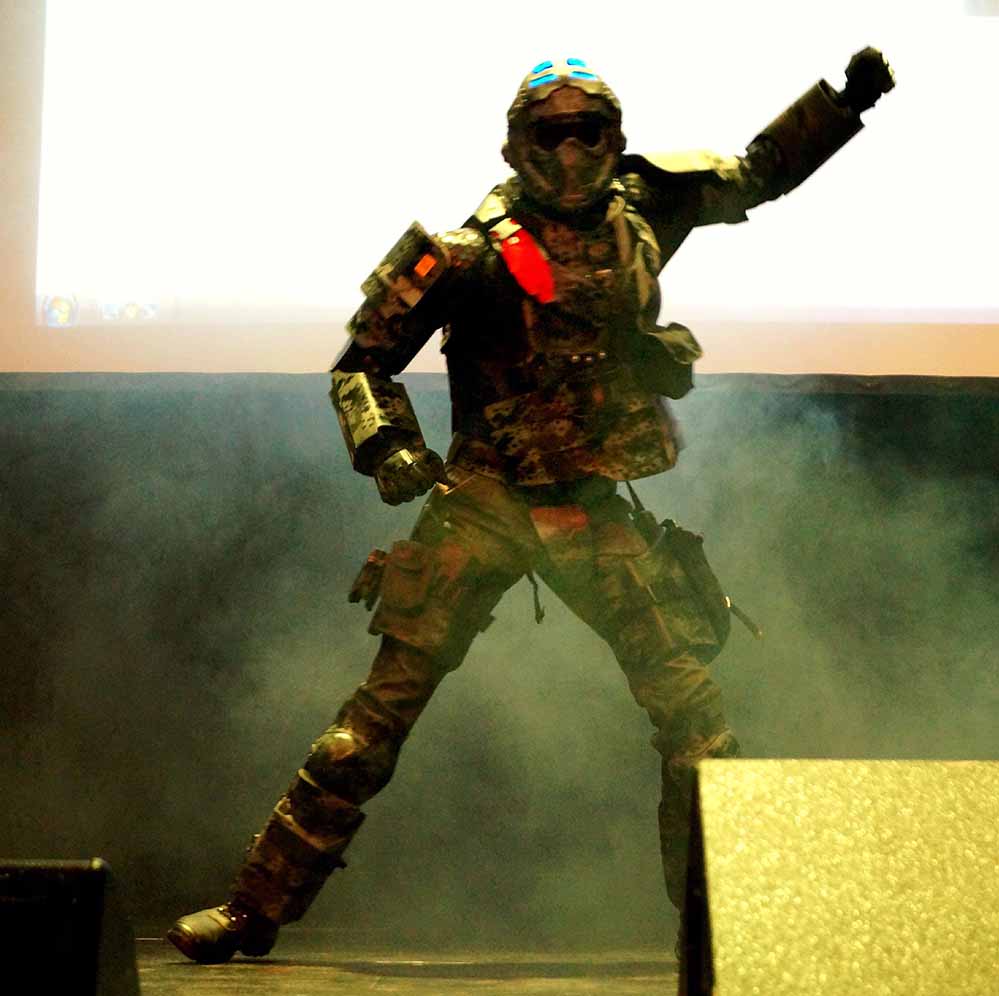Bei einem Cosplay-Wettbewerb geht es allerdings nicht nur um das Kostüm: Auch die Inszenierung muss hochwertig sein. So kommt es dazu, dass die Cosplayer auf der Hauptbühne der Convention während des Wettbewerbs eigene kleine Theaterstücke aufführten, tanzten oder Szenen aus Mangas und Animes nachspielten.