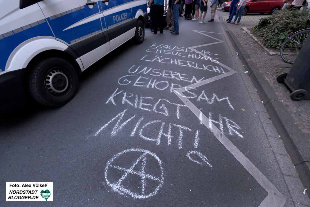 Noch sind die angekündigten neuen Polizeigesetze – gegen die wir kämpfen – hier gar nicht in Kraft, da wird den Bürgern und Bürgerinnen schon ein Eindruck davon vermittelt, was die Staatsschutz- und Polizeieinheiten unter ihren neuen Eingreifmöglichkeiten verstehen werden. Das erinnert auf erschreckende Weise auch an die Zeit ‚legaler‘ faschistischer Überfälle zu jeder Tages- und Nachtzeit.