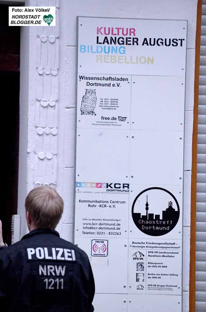 Den Durchsuchungsbefehl hatte das LKA Köln erwirkt, aber die Aussicht, mal ein soziokulturelles Zentrum von innen zu sehen, hat die Dortmunder Polizei vermutlich zum Trittbrettfahren auf dieser „Maßnahme“ animiert.