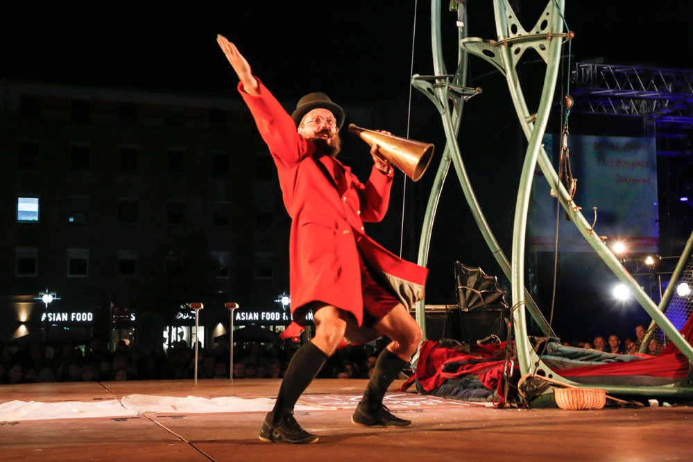 Die Jubiläumsausgabe des Dortmunder Festivals wurde am vergangenen Wochenende auf dem Friedensplatz gefeiert. Trotz größtenteils herbstlicher Temperaturen heizte eine feurige Melange aus Weltmusik und Straßentheater den knapp 13.000 BesucherInnen ordentlich ein.
