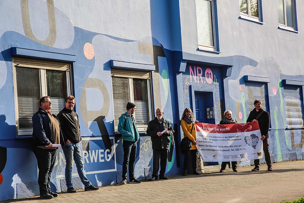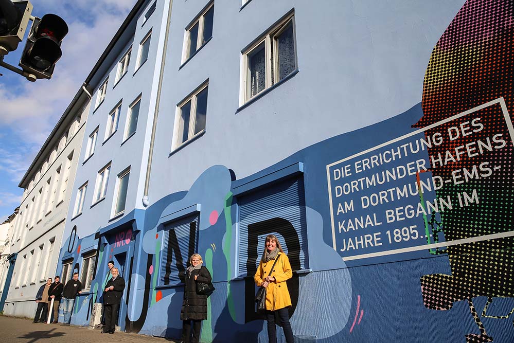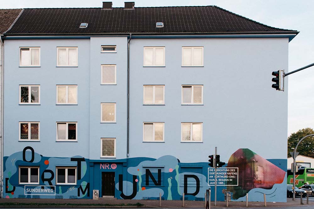 Mit Investitionen der Eigentümergemeinschaft, Zuschüssen der Stadt Dortmund, des Malerbetriebes Figge + Risch und den kreativen Ideen der HausbewohnerInnen und der beteiligten Auszubildenden wurde das Haus ein „blaues Wunder“ und präsentiert Graffiti und Street Art-Elemente. „Für ,Nachahmer‘ haben wir noch einen vollen Topf, um Zuschüsse zu verteilen“, betont Uta Wittig-Flick vom Amt für Wohnen und Stadterneuerung der Stadt Dortmund. 25 derartige Projekte konnten bislang in der Nordstadt realisiert werden. Demjenigen, der mit offenen Augen durch die Nordstadt geht, fallen diese Häuser sofort auf.