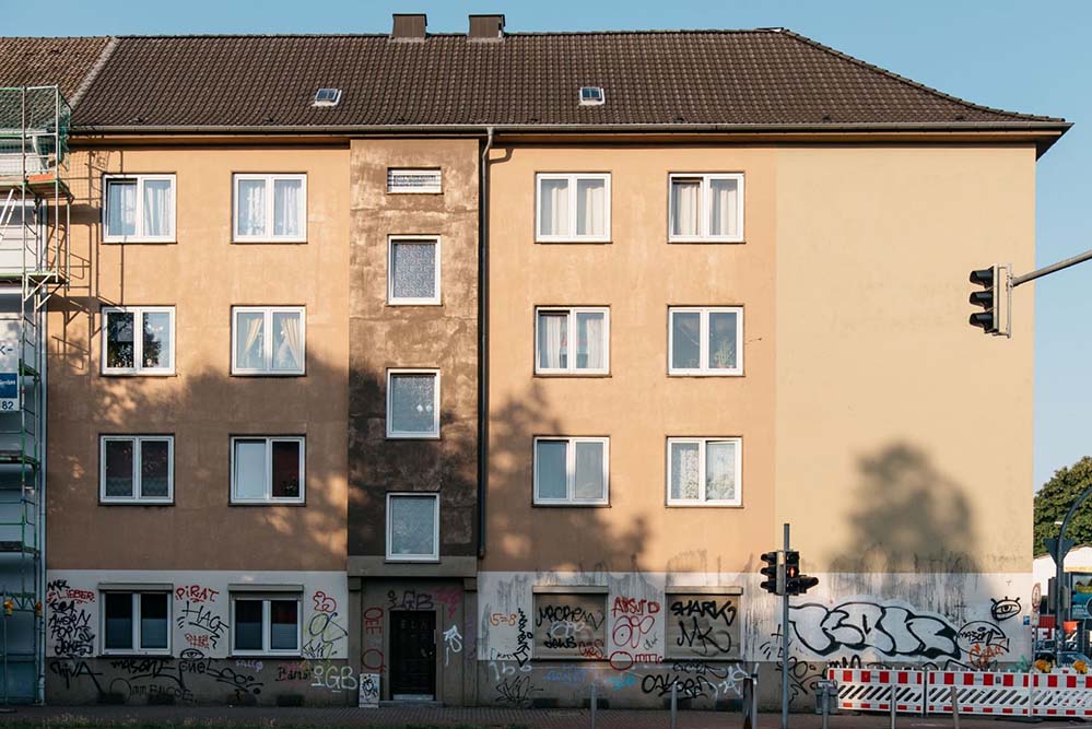 Fassadengestaltung am Haus Treibstraße Ecke Sunderweg.