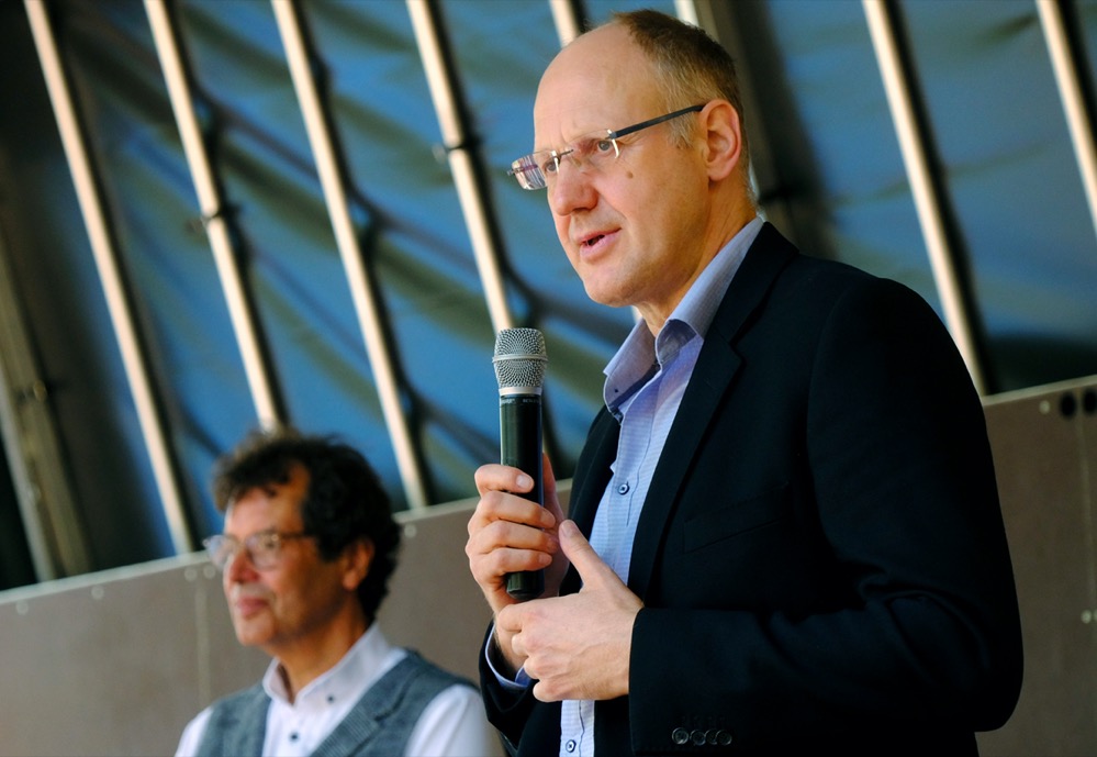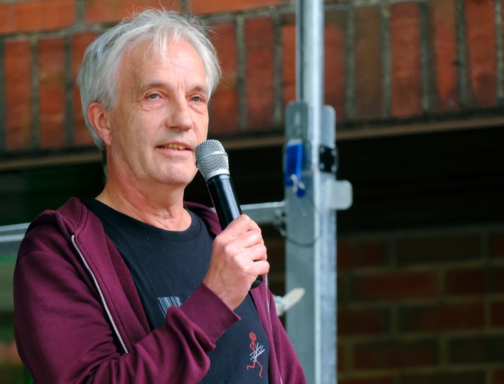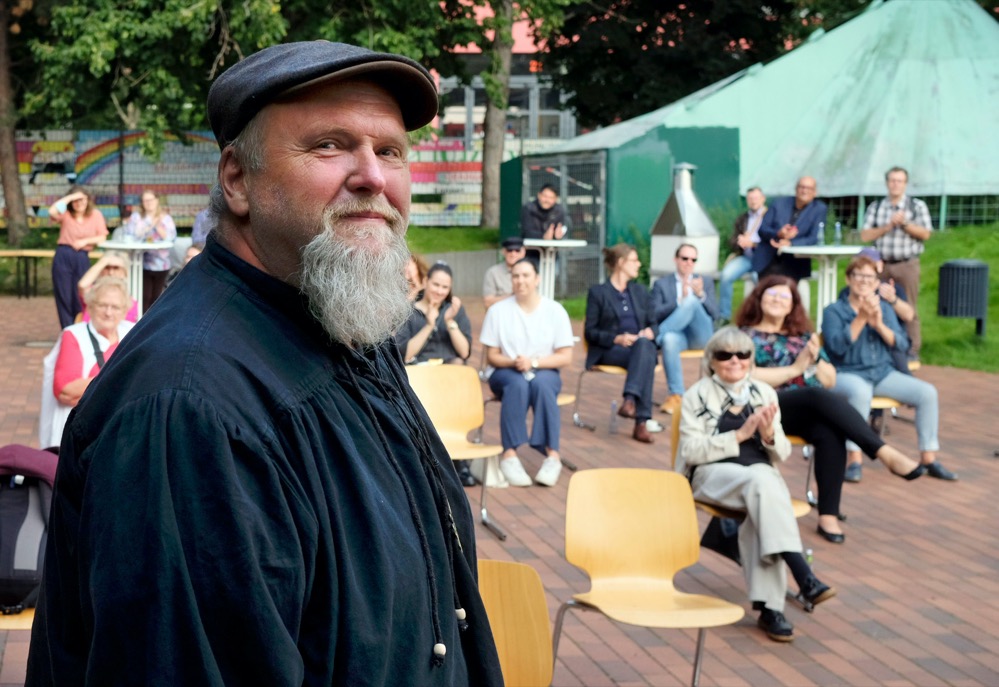 Laudatorin für den ersten Preisträger war Susanne Linnebach, Amt für Stadterneuerung. Dabei handele es sich um: „Jemand der seit langen Jahren in der Nordstadt aktiv war.“ So seien viele seiner Projekte sicher noch in Erinnerung: z. B. die „Riesen-Küche“, mit der man sich einmal konkret vorstellen konnte, wie Kleinkinder die Welt der Erwachsenen sehen und fühlen.