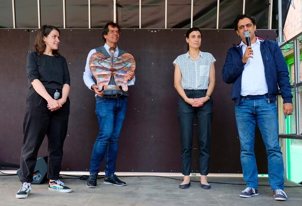 Sie konnte leider nicht persönlich an der Verleihung teilnehmen, ließ aber Grußworte und ihre Freude über den Preis ausrichten. An ihrer Stelle nahmen Simone Weiß, Vorstandsmitglied beim forum JUGEND und Ali Şirin vom Planerladen den Preis entgegen.