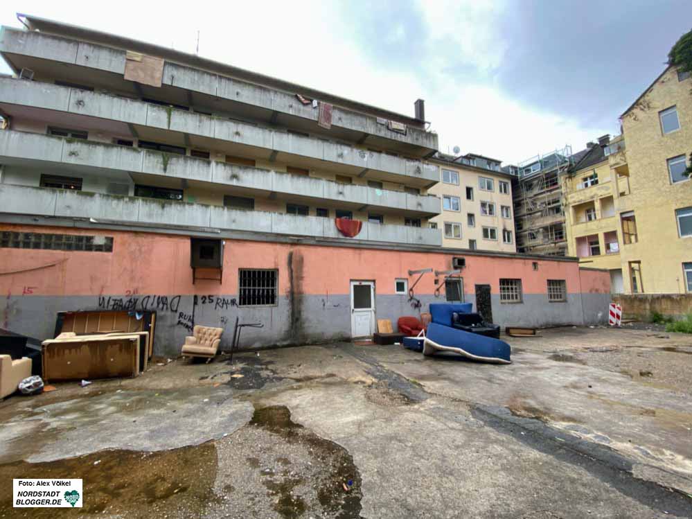 Denn es bildet einen gemeinsamen baulichen Rahmen, grenzt den Hof ab und das Erdgeschoss würde dringend benötigt, um die Nachbarschafts- und Beratungsangebote unterzubringen. Denn die müssen weichen, weil in den Ladenlokalen an der Mallinkrodtstraße eine neue FABIDO-Kita entstehen soll.