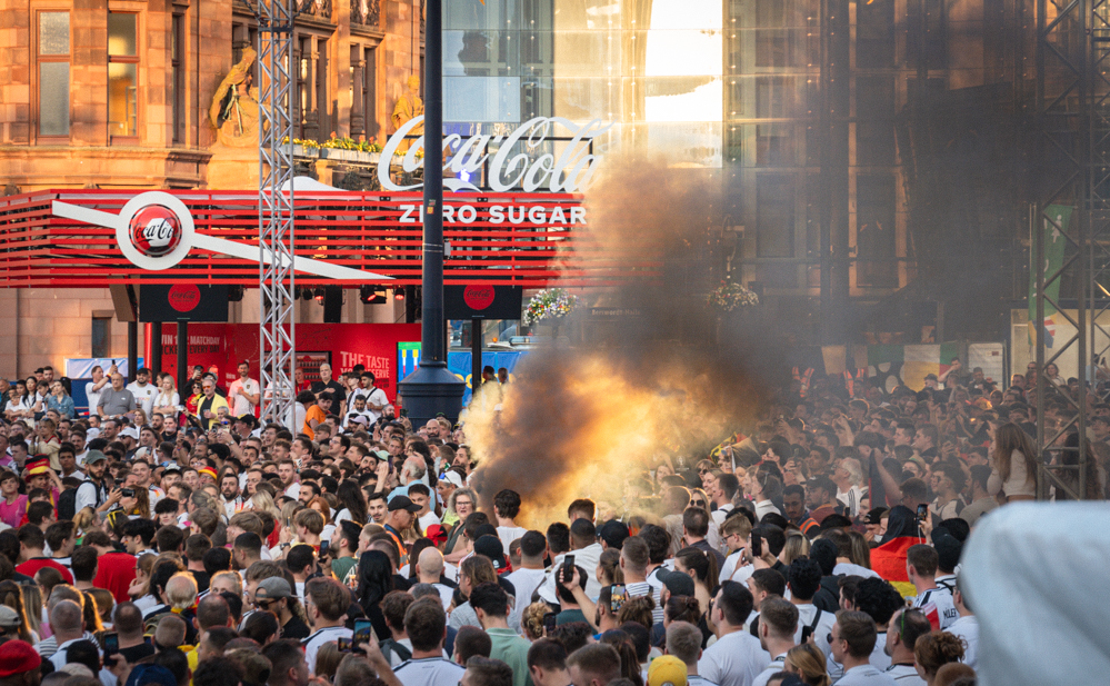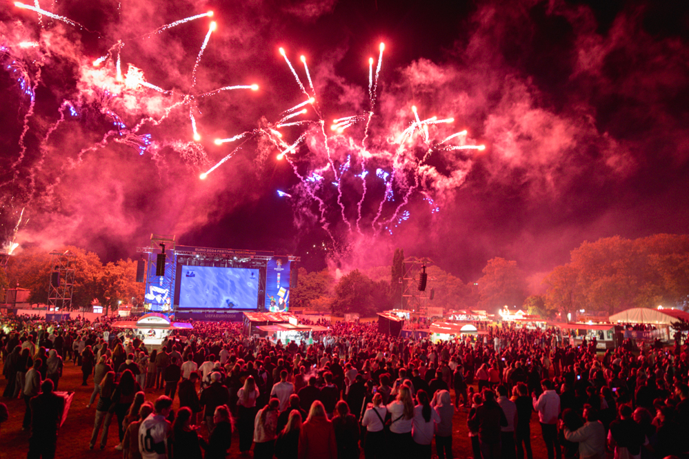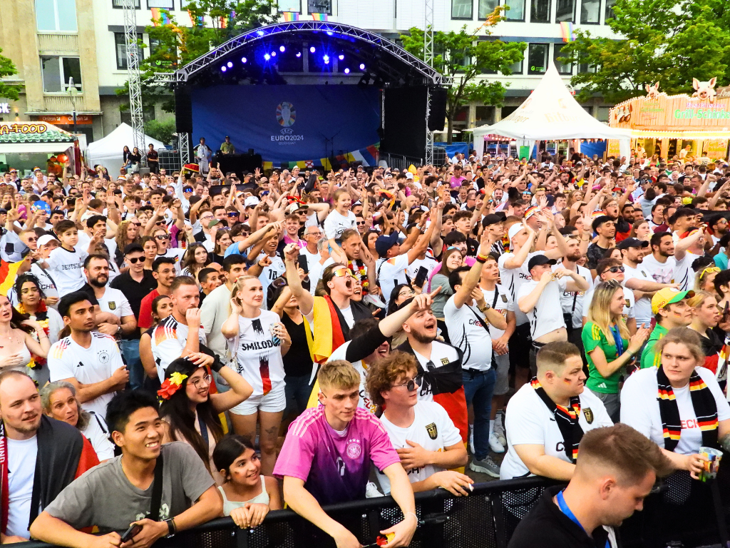 Mit einem fulminanten 5:1 gegen Schottland versetzte die Deutsche Nationalelf das ganze Land in EM-Stimmung. Zum Auftaktspiel pilgerten Tausende in die Fanzonen am Friedensplatz und im Westfalenpark. Letztere wurde mit einem großen Feuerwerk eröffnet.