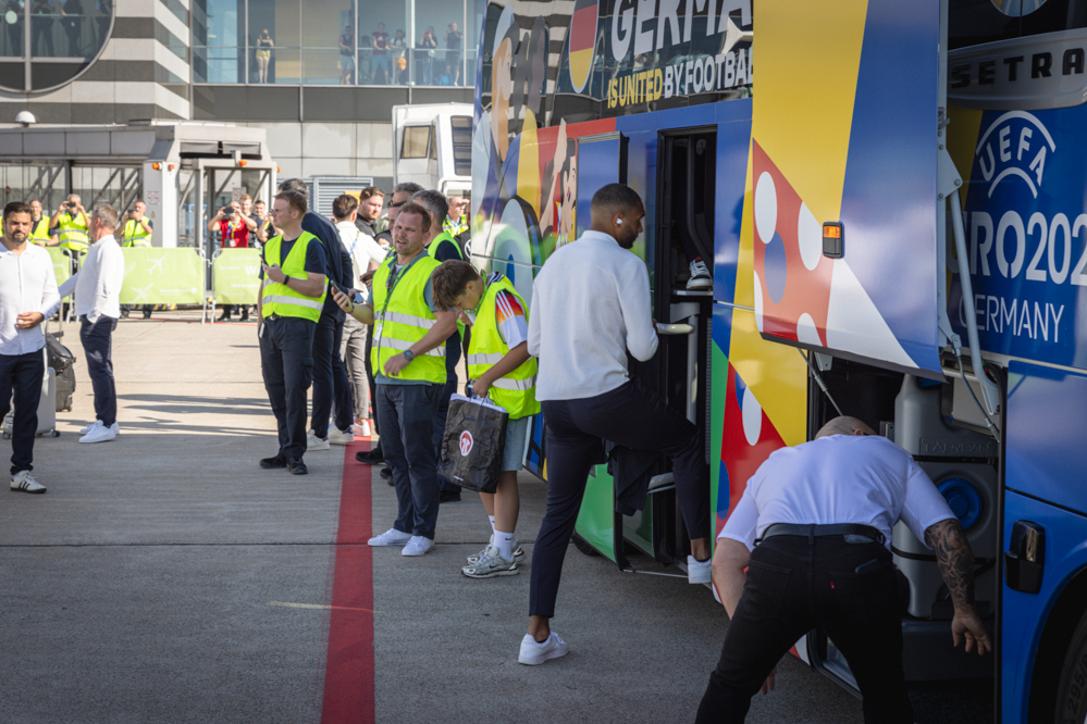Einen Tag vor dem Achtelfinalspiel landete die Nationalmannschaft am Dortmunder Flughafen. Kurz zuvor kam auch die dänische Nationalmannschaft an. Die Italiener hingegen machten sich auf den Weg nach Berlin.