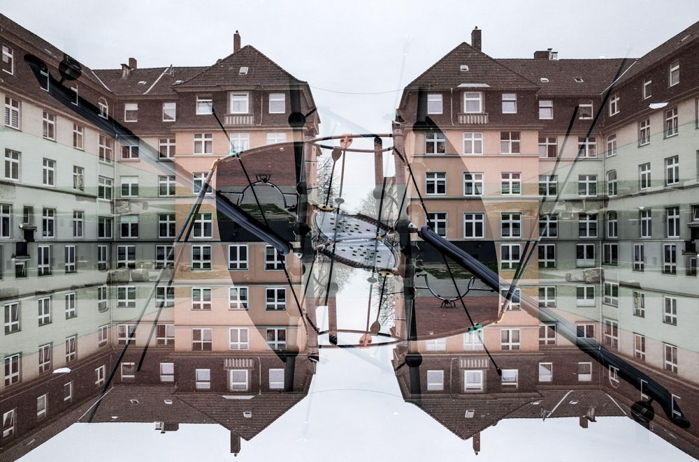 Mehrfachbelichtungen und Spiegelungen sind die Sache von Alexander Hügel. Der Fotografiestudent dekonstruiert die Stadt und setzt sie in seinen Fotografien neu zusammen. Wie zuletzt den Borsigplatz in seinen Semesterarbeiten „Nordstadtblues“ und „Theatre of real life“.
