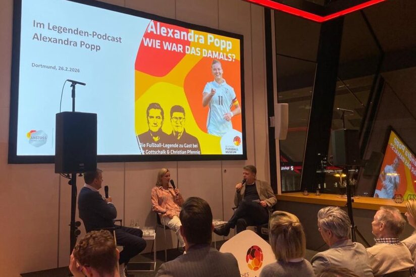 Alexandra Popp war als echte Titelsammlerin zu Gast im Legenden-Podcast „Wie war das damals?“. Das Gespräch fand mit Pit Gottschalk und Christian Pfennig im Deutschen Fußballmuseum statt. Die langjährige Kapitänin der deutschen Nationalmannschaft hat als erste Frau und als erste noch aktive Spielerin über ihre außergewöhnliche Karriere gesprochen. Popp ist zweimalige Champions-League-Siegerin, siebenmalige Deutsche Meisterin, zehn mal hintereinander DFB-Pokalsiegerin – insgesamt holte sie den Titel 13 mal und sie ist zweifache Olympiasiegerin.