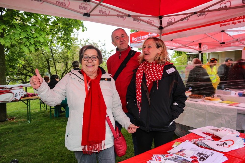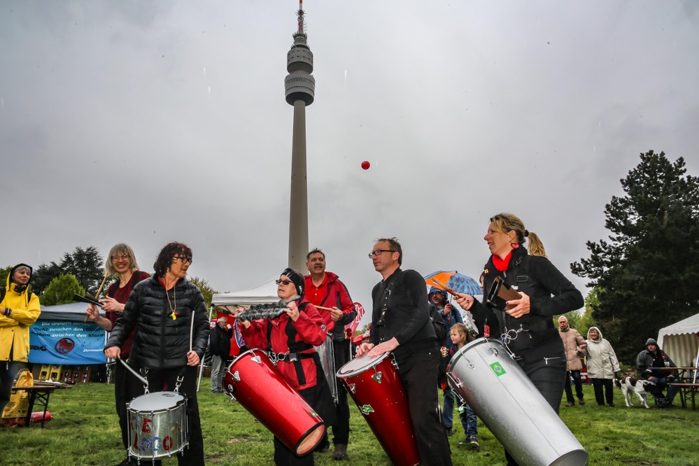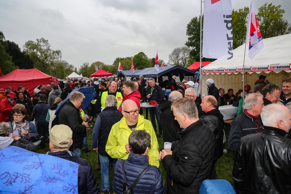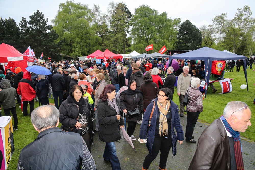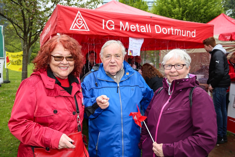 Mit der traditionellen Mai-Demo und anschließenden Familienfest beging der DGB Dortmund seine traditionelle Mai-Feier. Rund 2000 Menschen nahmen an der Demo vom Platz der Alten Synagoge teil. Nochmals mehr Menschen fanden sich trotz des schlechten Wetters im Park ein.