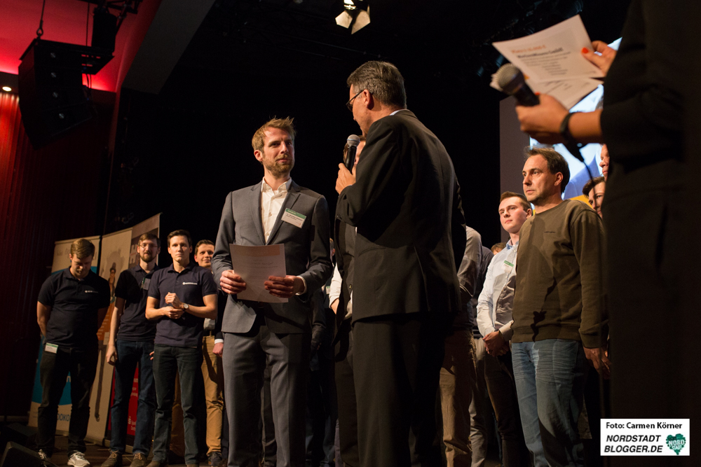 Das Team von MotionMiners GmbH erzählte, dass sie sich außerordentlich über die beiden Preise freuen und bei der Verleihung des Sonderpreises nicht gedacht hätten, auch hier den 1. Platz zu belegen. Insgesamt herrschte eine gut gelaunte Stimmung im domicil. Nach der Veranstaltung verweilten die Teams noch im Saal, um sich untereinander kennenzulernen und zu vernetzen.