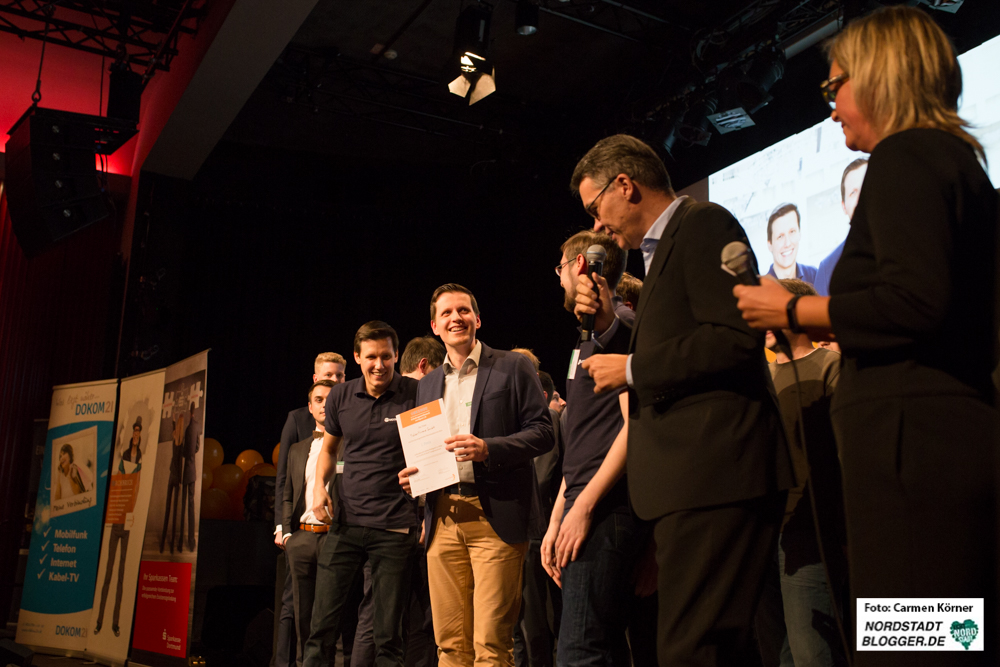 sentin bei der Verleihung des Sonderpreises für Technologie beim start2grow "Pitch and Party"-Abend.