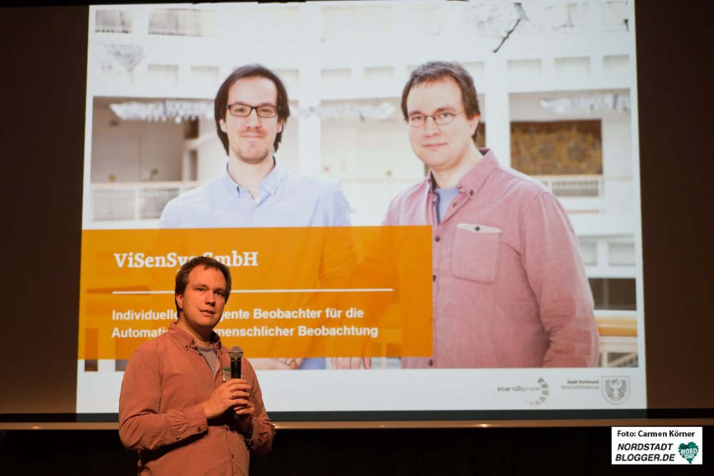 Erneut durften die 20 Teams ihre Geschäftsideen auf der Bühne präsentieren. Jedes Team hatte dafür zwei Minuten Zeit. Anschließend wurden die Top 10 des Wettbewerbs in Dortmund auf die Bühne gebeten.