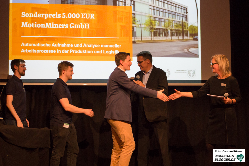 Der 38. „Pitch and Party“-Abend von start2grow hat im domicil stattgefunden. Dabei wurden die Preisträger des Gründungswettbewerbs der Wirtschaftsförderung gekürt. Den 1. Platz belegte MotionMiners GmbH mit der Entwicklung von Sensoren, welche Prozessabläufe beobachten, analysieren und effizienter gestalten sollen.