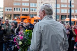 Die Wertschätzung Dortmunds für ihren Stadtdirektor ist auch in den Minuten, bevor Stüdemann selbst den Friedensplatz betritt, spürbar. „Die Größe dieser Veranstaltung ist genau angemessen“, sagt ein Beamter des Ordnungsamts. Eine Frau erinnert daran, wie Stüdemann sich für das Dortmunder Theater eingesetzt hat: „Er hat dafür gekämpft, dass wir ein solches Theater haben.“