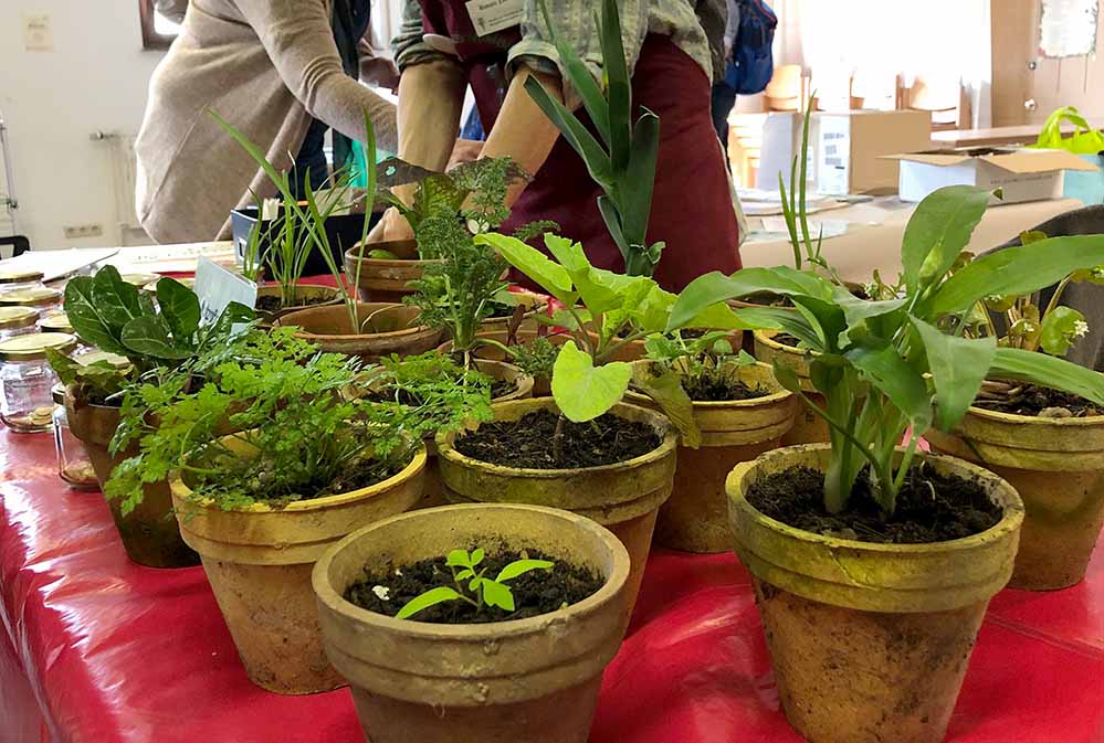 An einer Jungpflanzentauschstation wurden den BesucherInnen u. a. Etagenzwiebeln, Salatpflanzen und Wildtomaten angeboten. An den Tauschstationen im Vereinsheims konnten die Besucher Saatgut von diversen vergessenen und auch bekannten Gemüsepflanzen, Kräutern und Blumen erhalten.